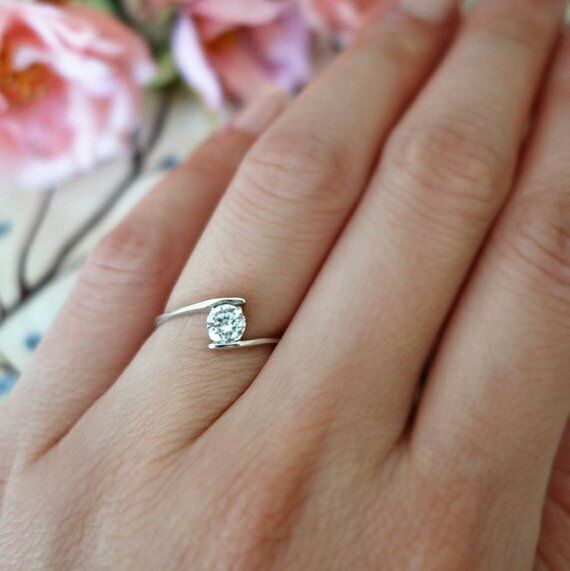 1ct Round Cut Diamond on Tension Solitaire Engagement Ring 14k White Gold Finish