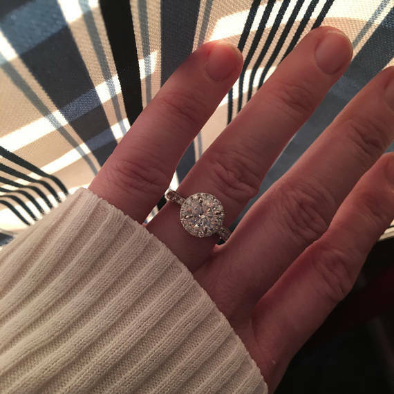 1ct Round Cut Diamond Solitaire Halo Engagement Ring 14k White Gold Finish