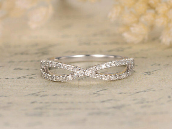 1Ct Round Cut Diamond Split Shank Infinity Wedding Band 14K White Gold Finish