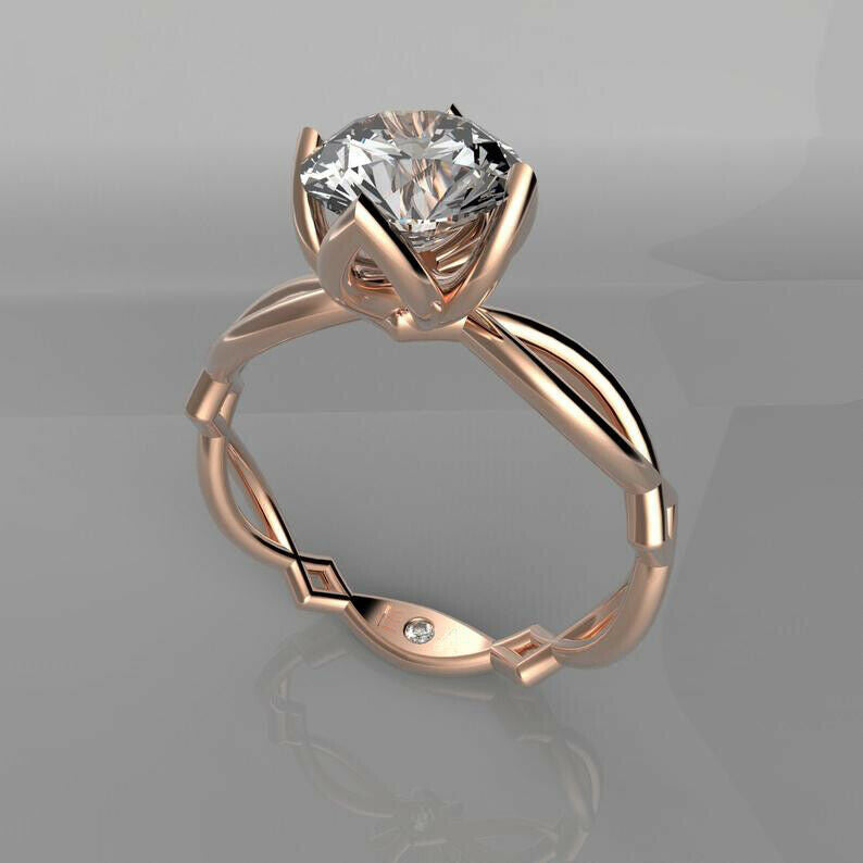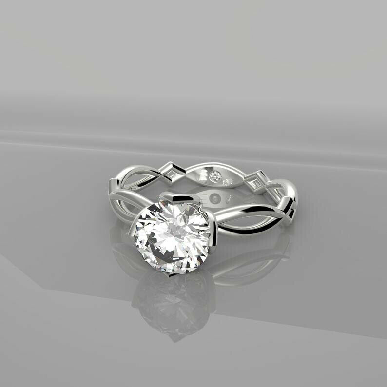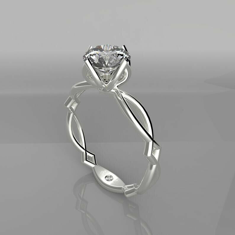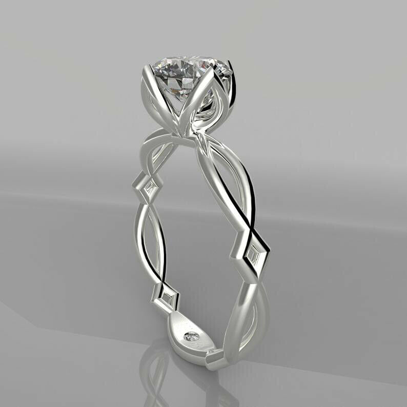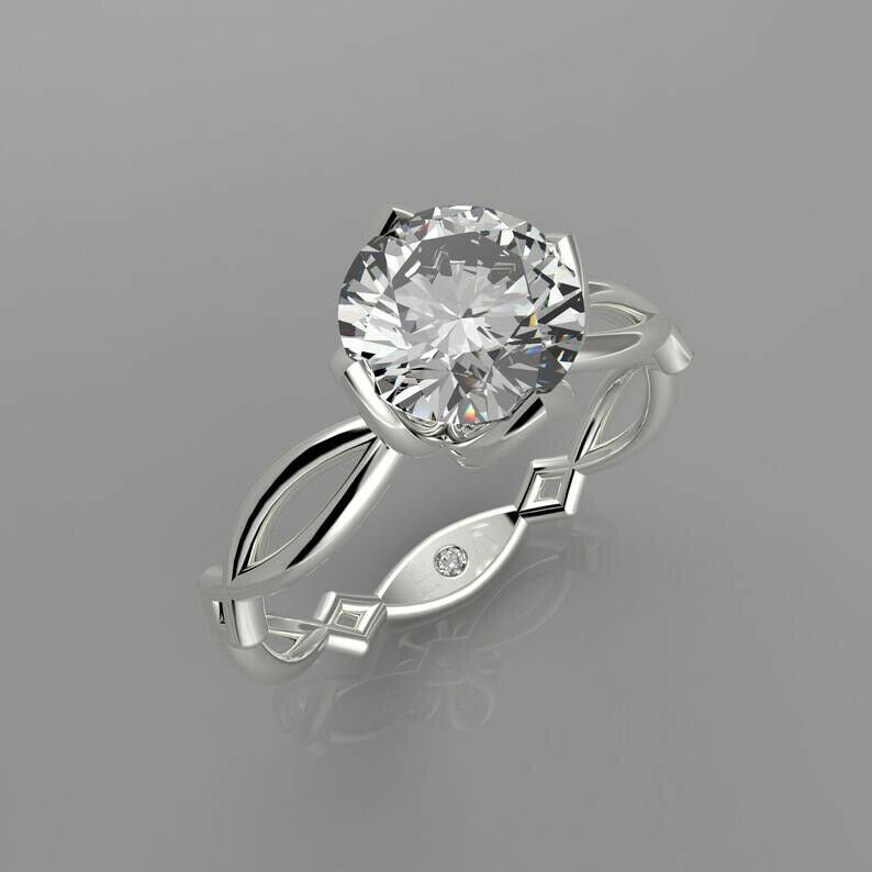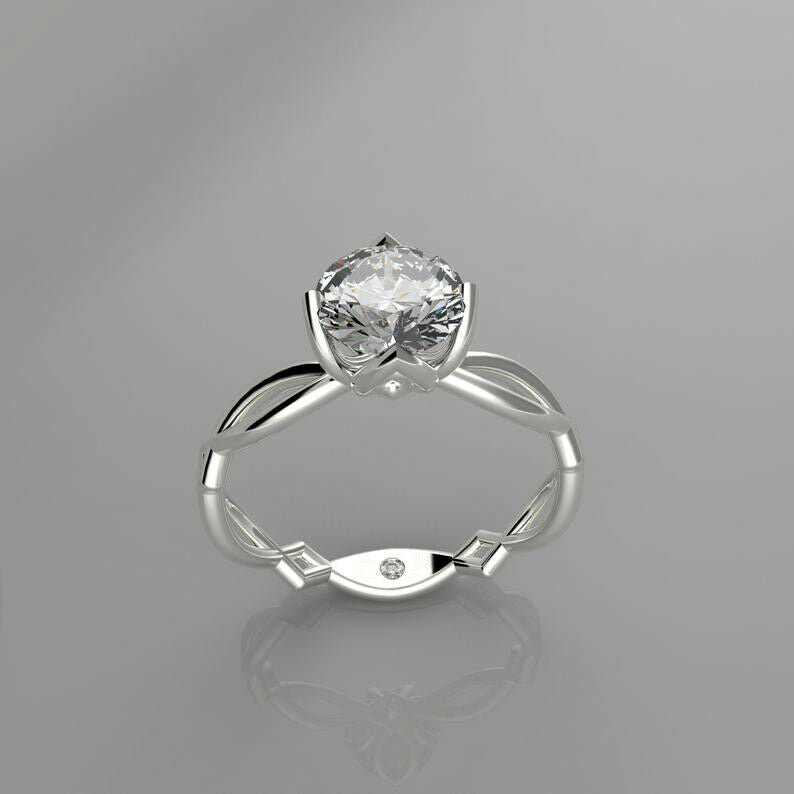 1ct Round Cut Diamond Split Shank Open Floral Solitaire Ring 14k White Gold Over