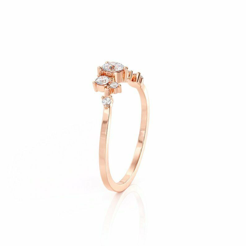 1ct Round Cut Diamond Stylish Solitaire with Accents Engagement Ring 14k Rose Gold Finish