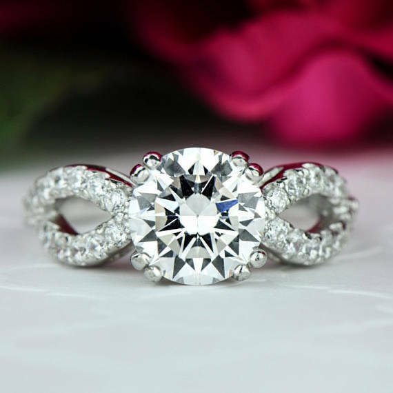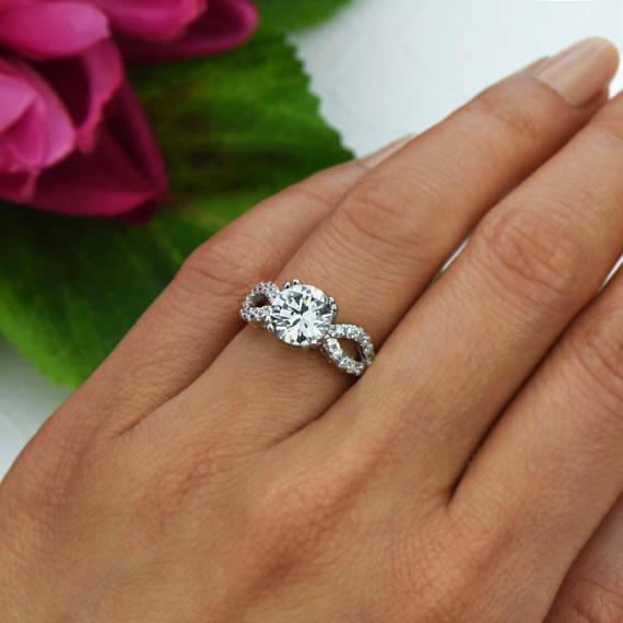1ct Round Cut Diamond Unique Infinity Engagement Ring 14k White Gold Finish