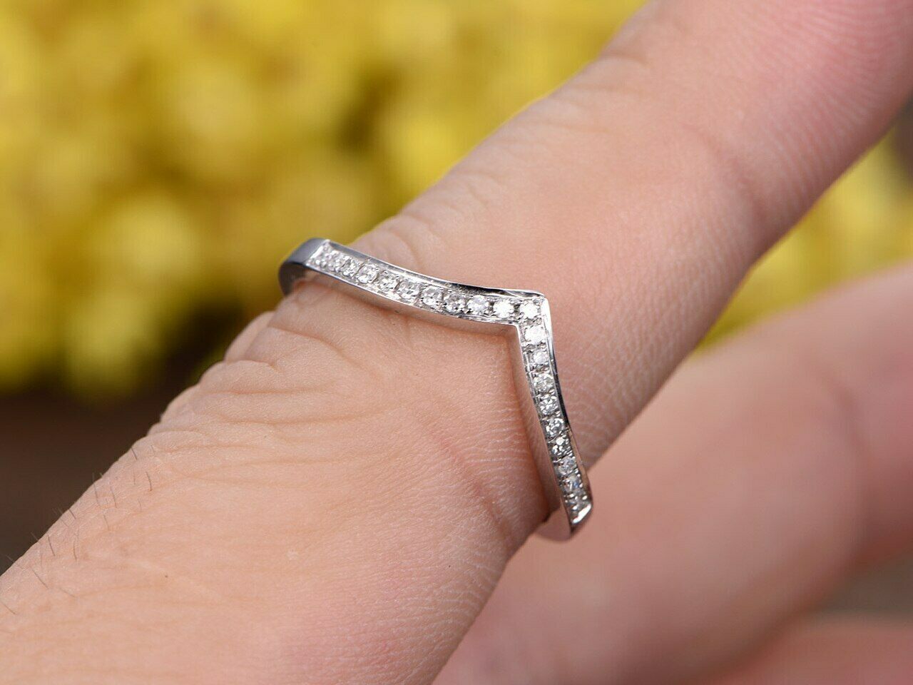 1ct Round Cut Diamond V Shaped Petite Chevron Curved Wedding Band 10k White Gold Finish