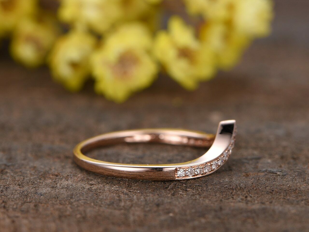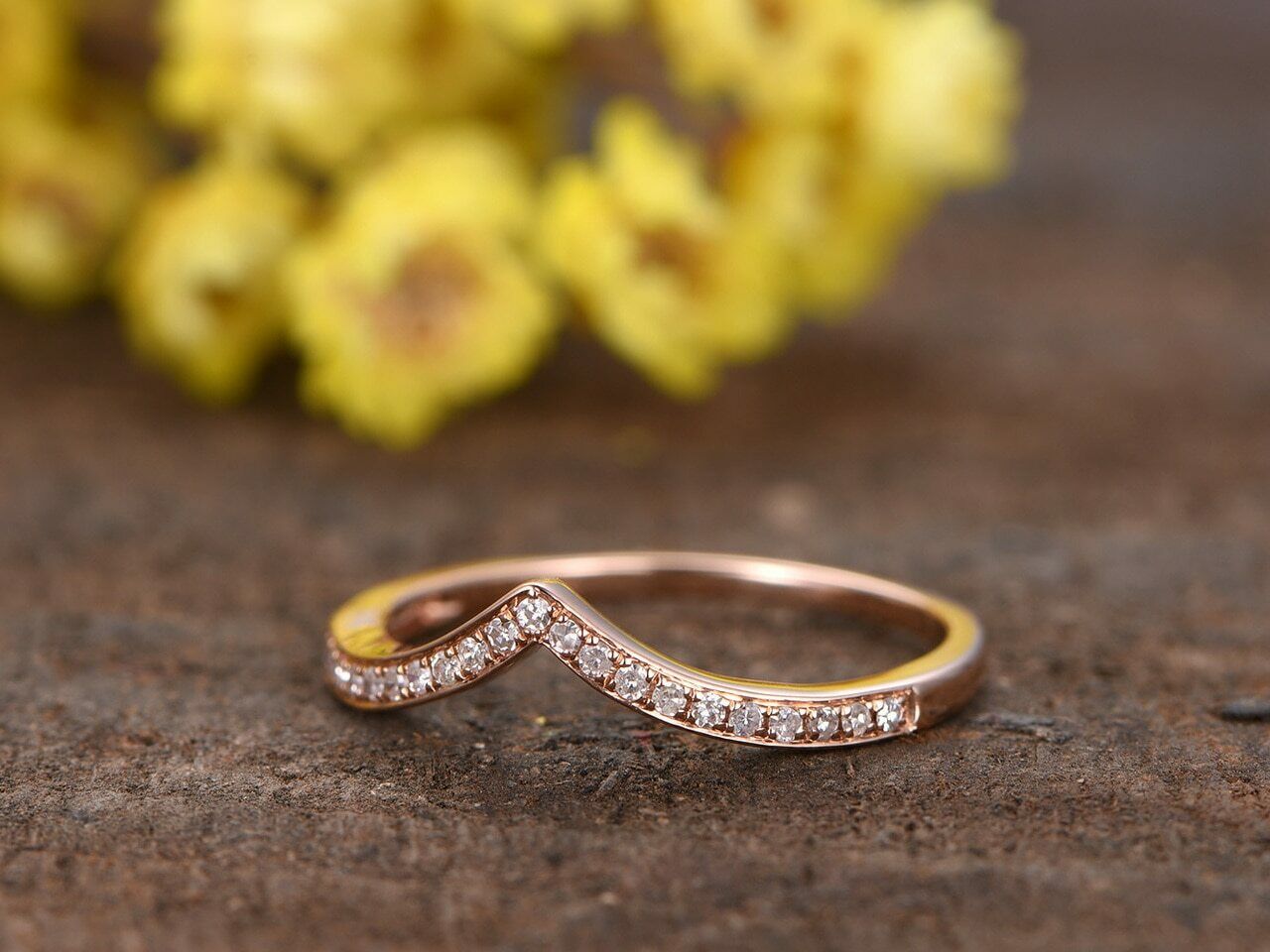 1ct Round Cut Diamond V Shaped Petite Curved Wedding Band 14k Rose Gold Finish