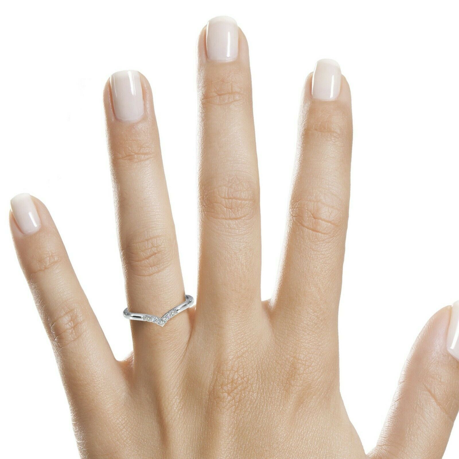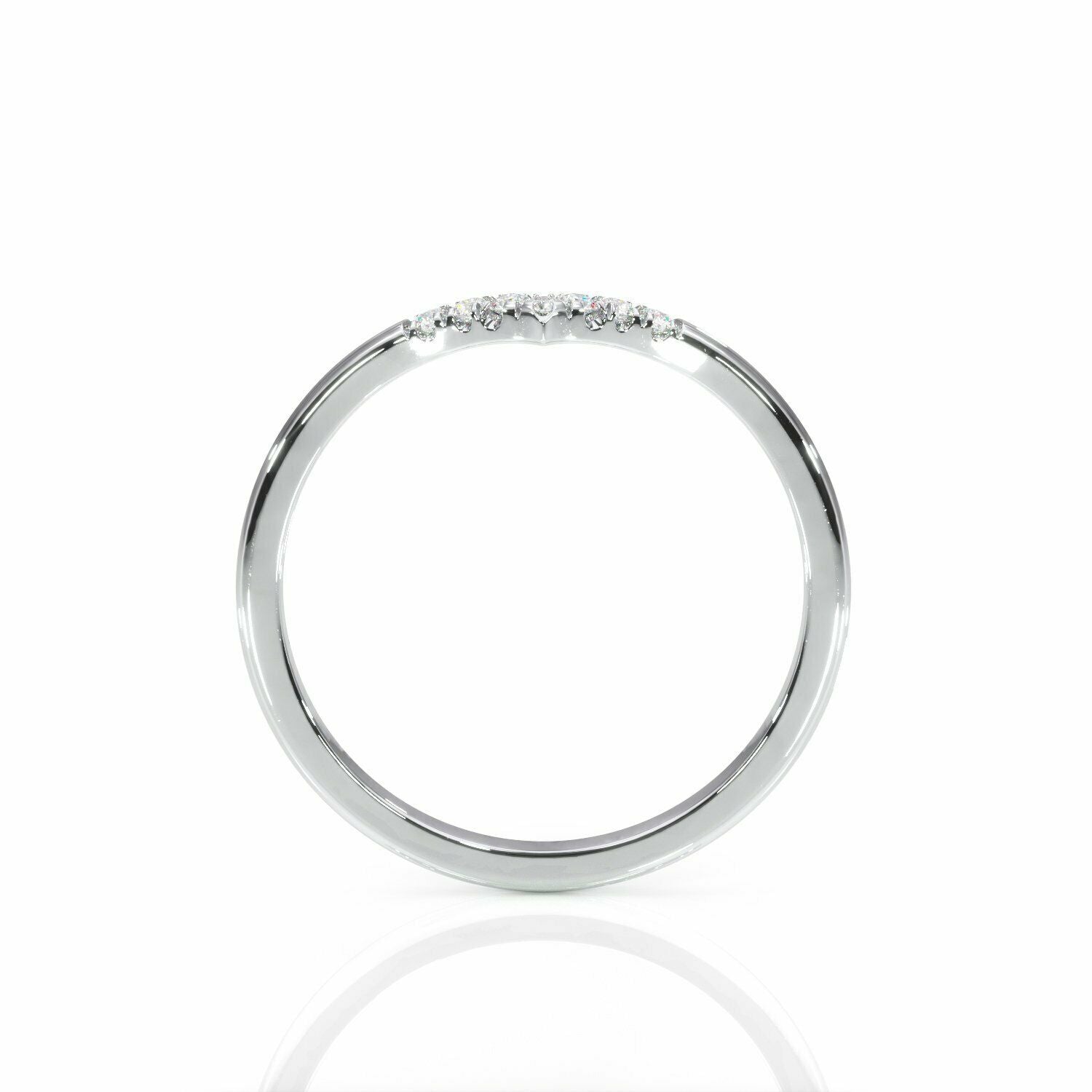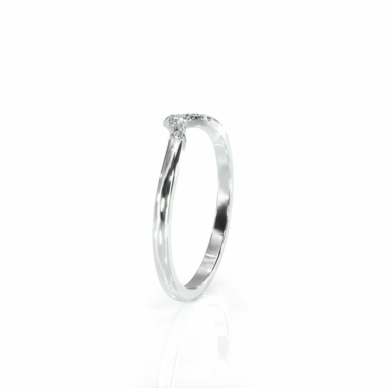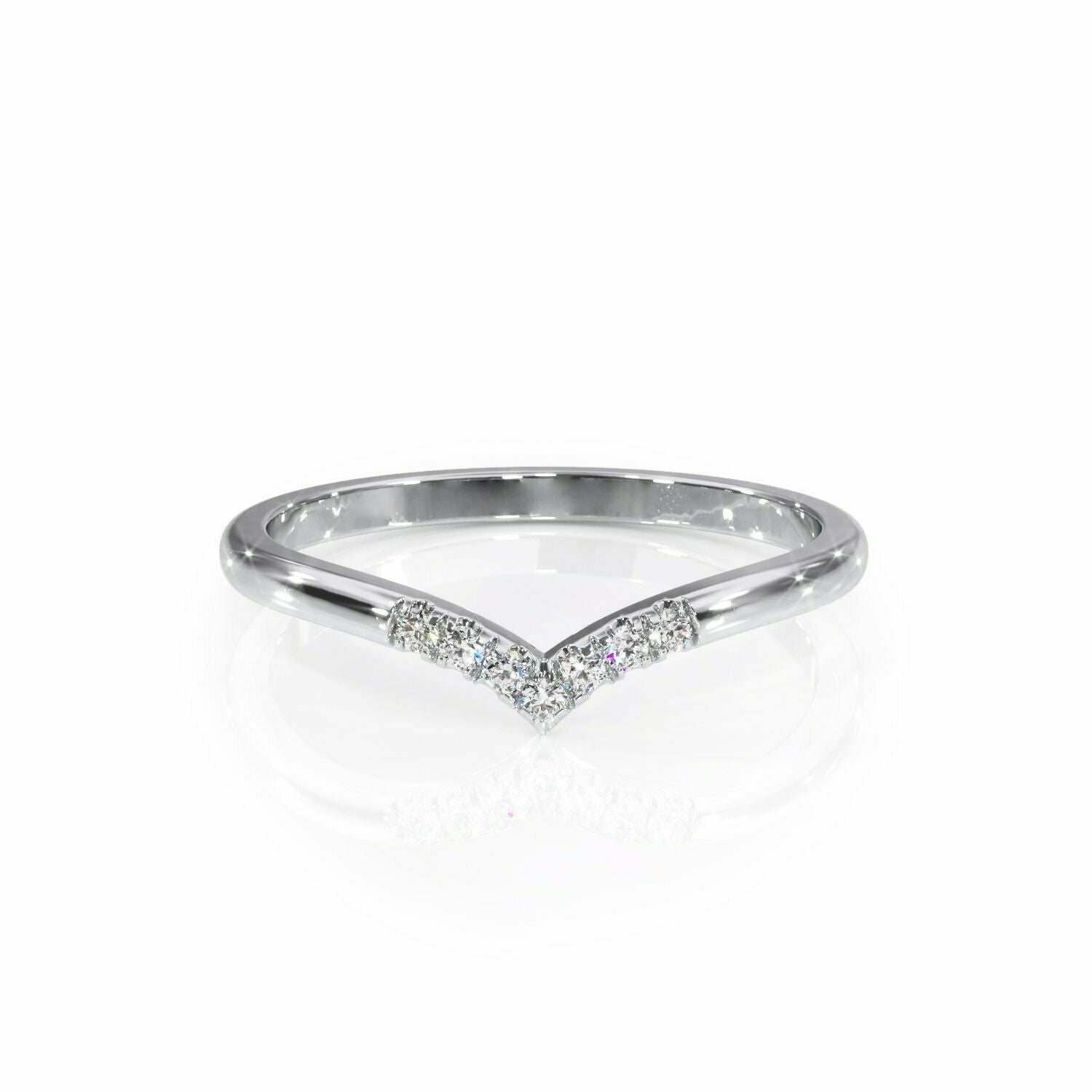 1Ct Round Cut Diamond V Shaped Petite Curved Wedding Band 14K White Gold Finish