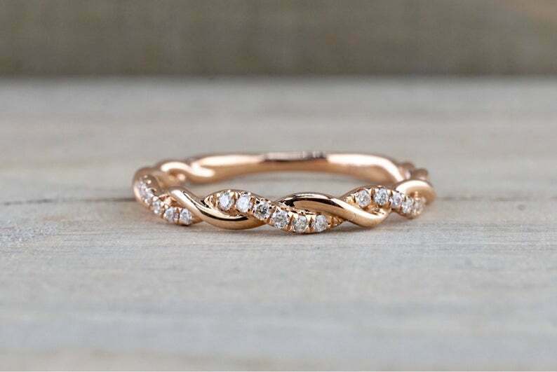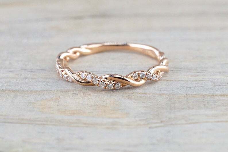 1ct Round Cut Diamond Wedding Band 14k Rose Gold Finish Twisted Rope Infinity