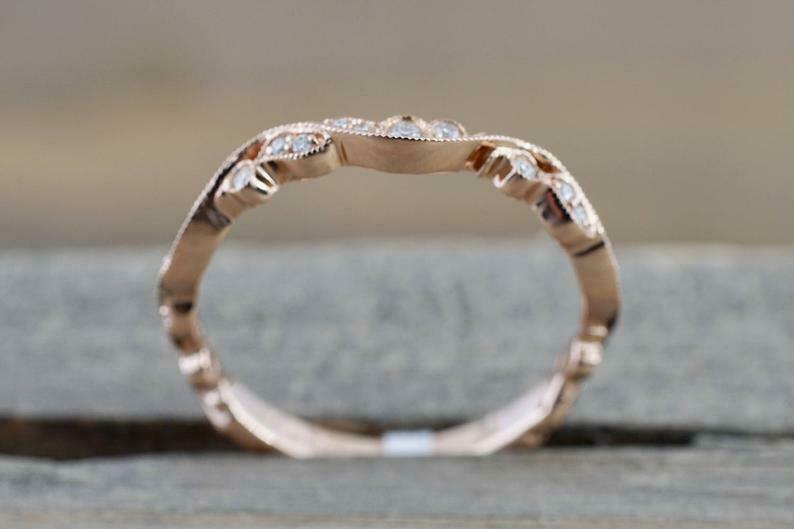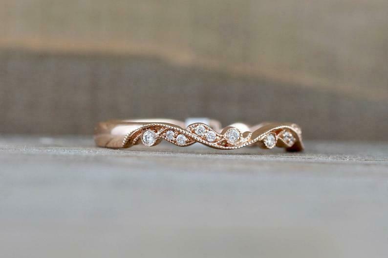 1ct Round Cut Diamond Wedding Band 14k RoseGold Over Dainty Milgrain Anniversary