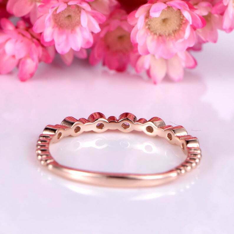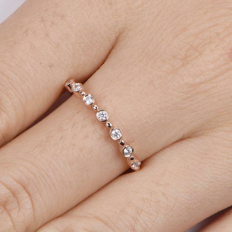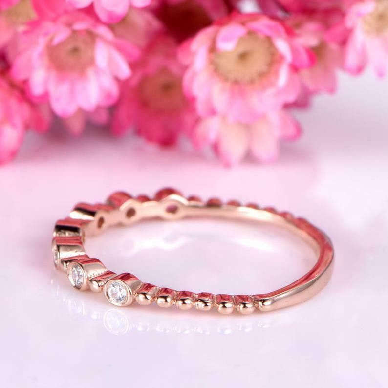 1ct Round Cut Diamond Wedding Band Bezel Set Dainty Petite 14k Rose Gold Finish
