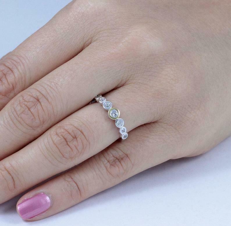 1ct Round Cut Diamond Wedding Band Bezel Set Half Eternity 14k Dual Gold Finish