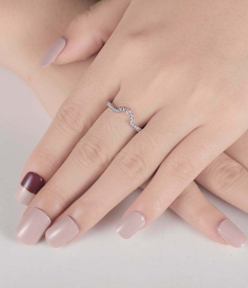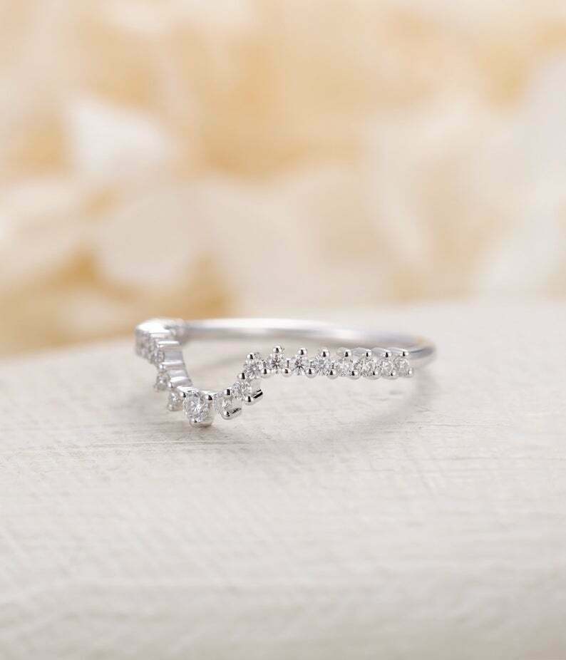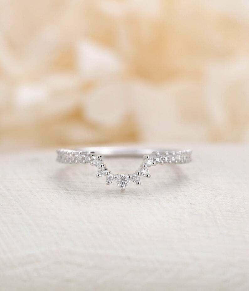 1ct Round Cut Diamond Wedding Band Curved Stackable Women 14k White Gold Finish