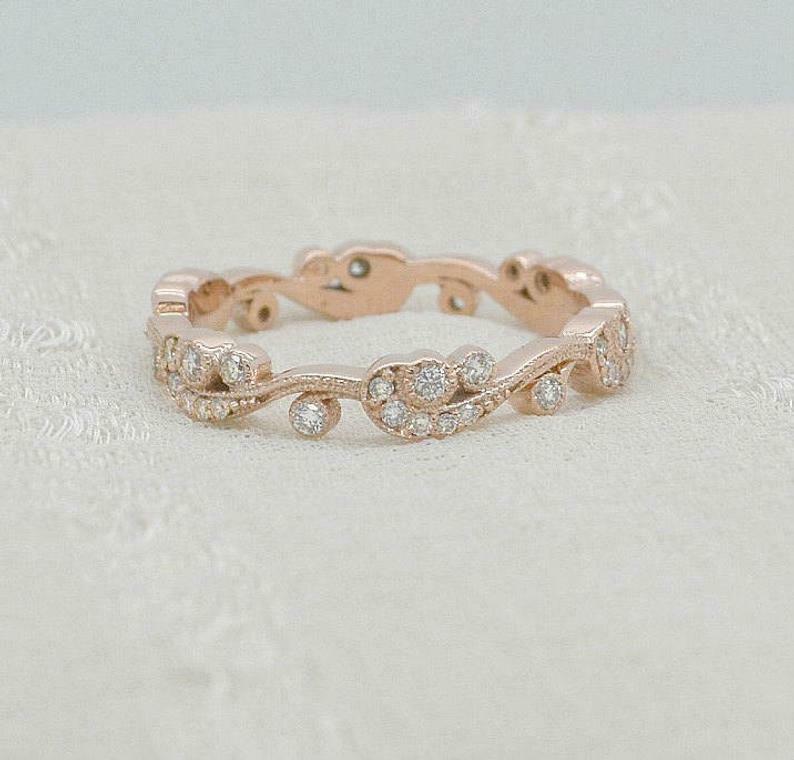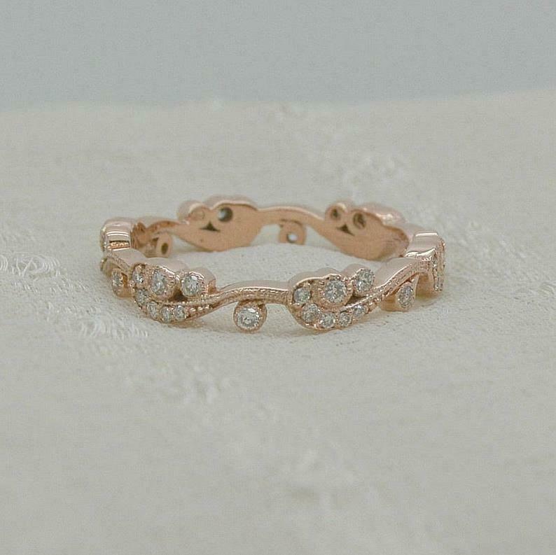 1ct Round Cut Diamond Wedding Band Filigree Milgrain Dainty 14k Rose Gold Finish