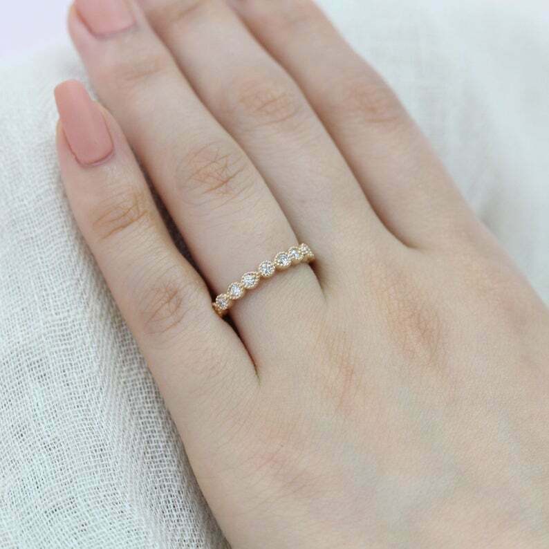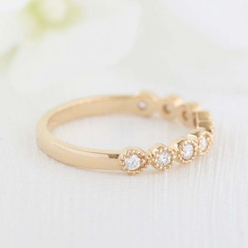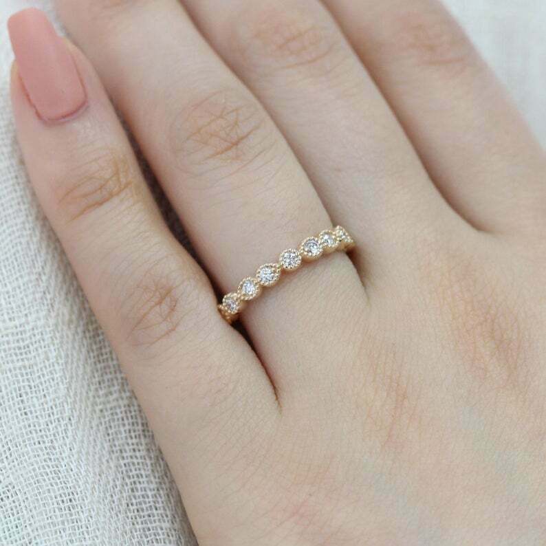 1ct Round Cut Diamond Wedding Band Milgrain Half Eternity 14k Yellow Gold Finish