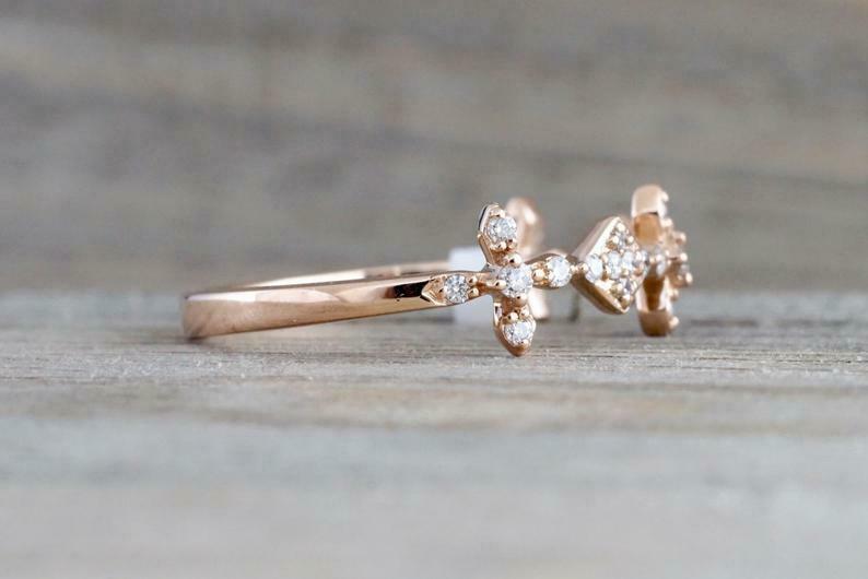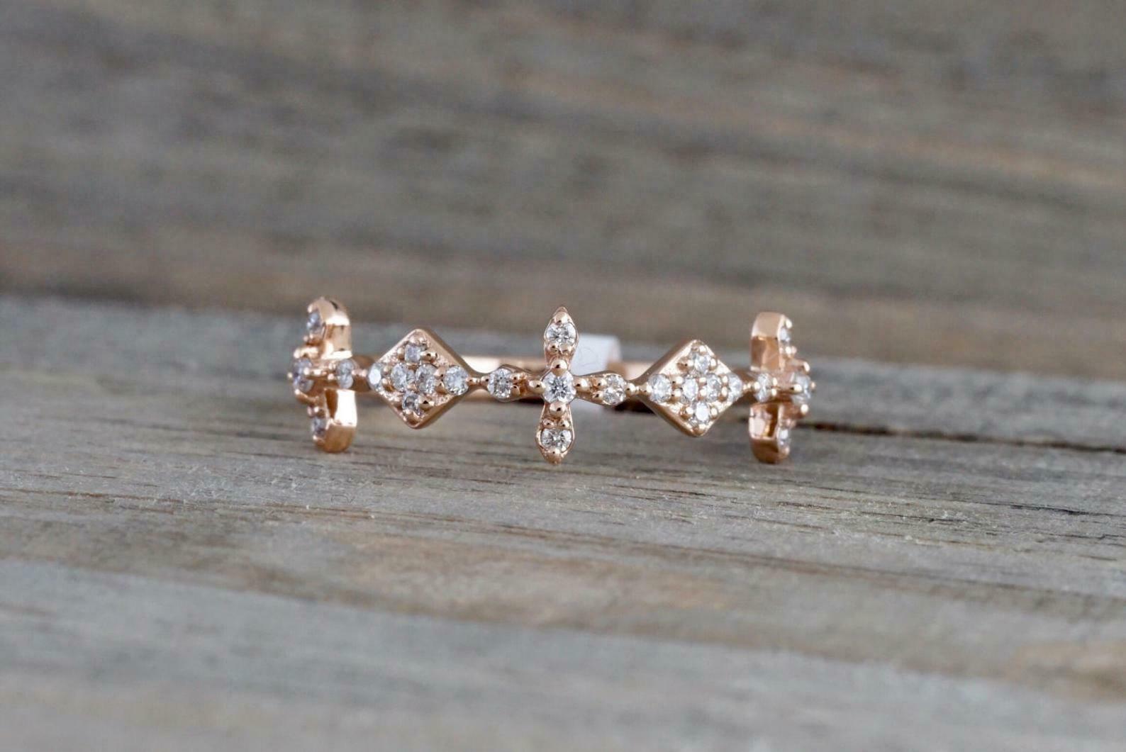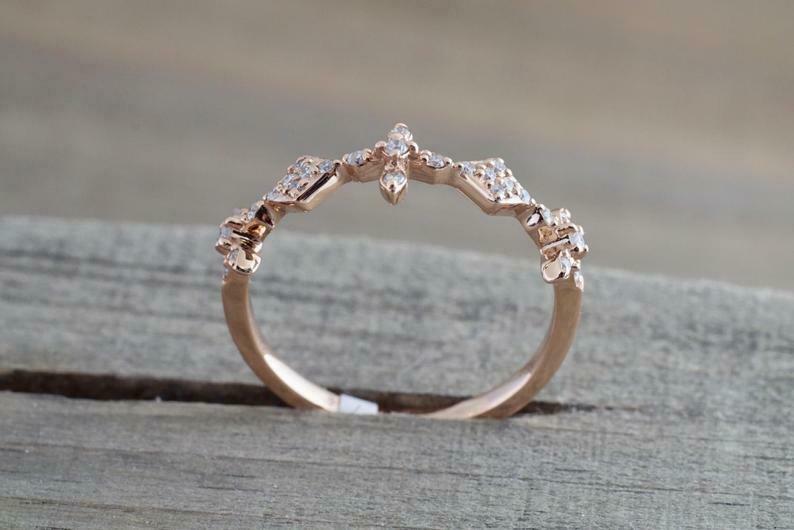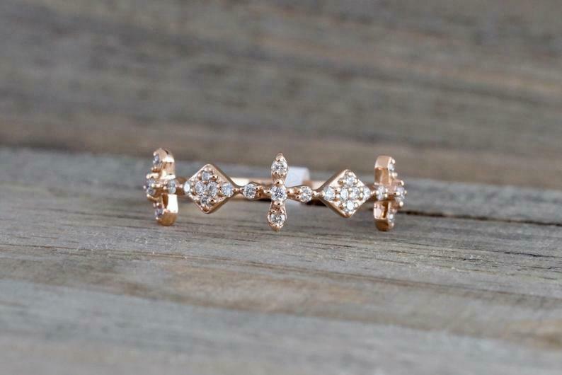 1ct Round Cut Diamond Wedding Band Thin Minimalist Petite 14k Rose Gold Finish