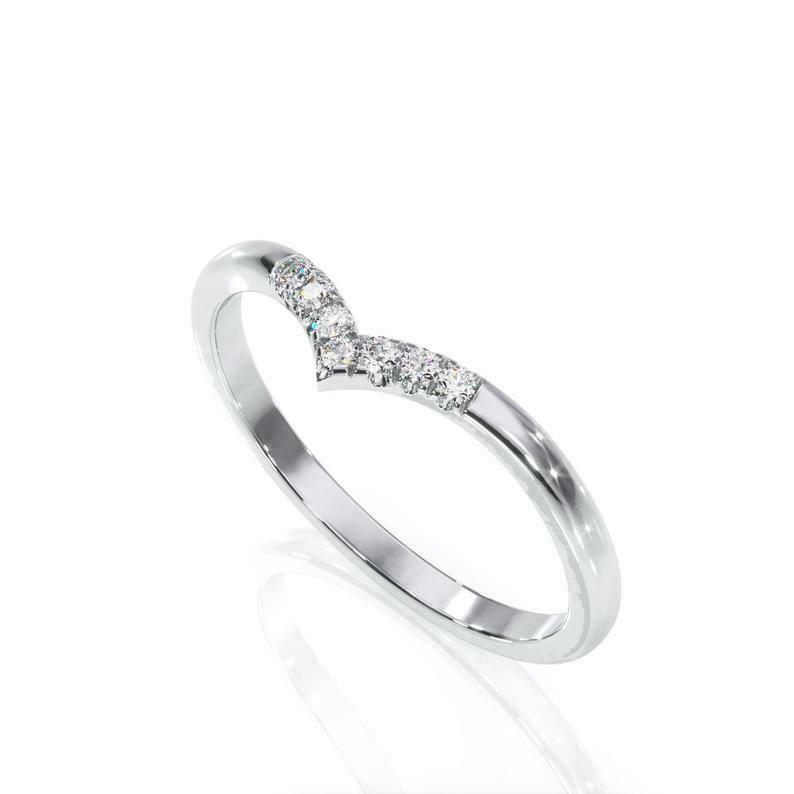 1ct Round Cut Diamond Wedding Band V Shaped Petite Curved 14k White Gold Finish