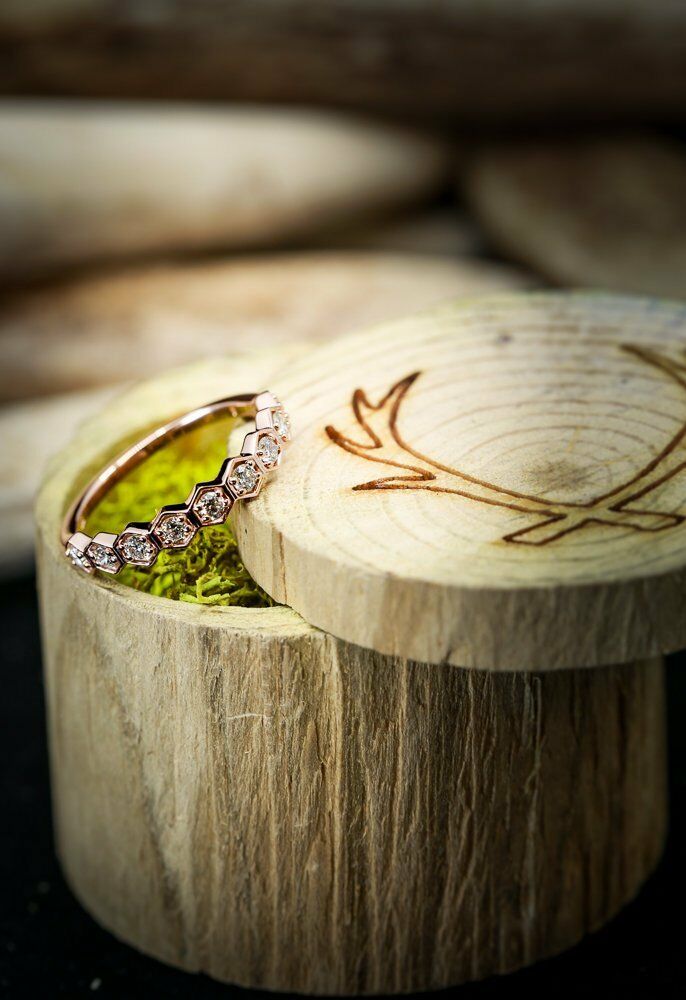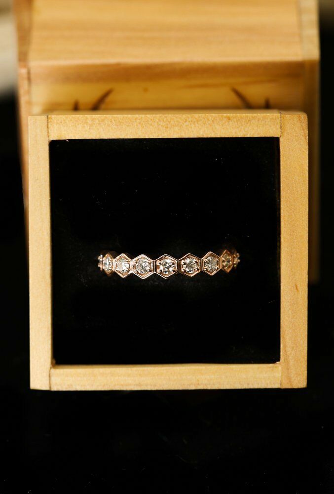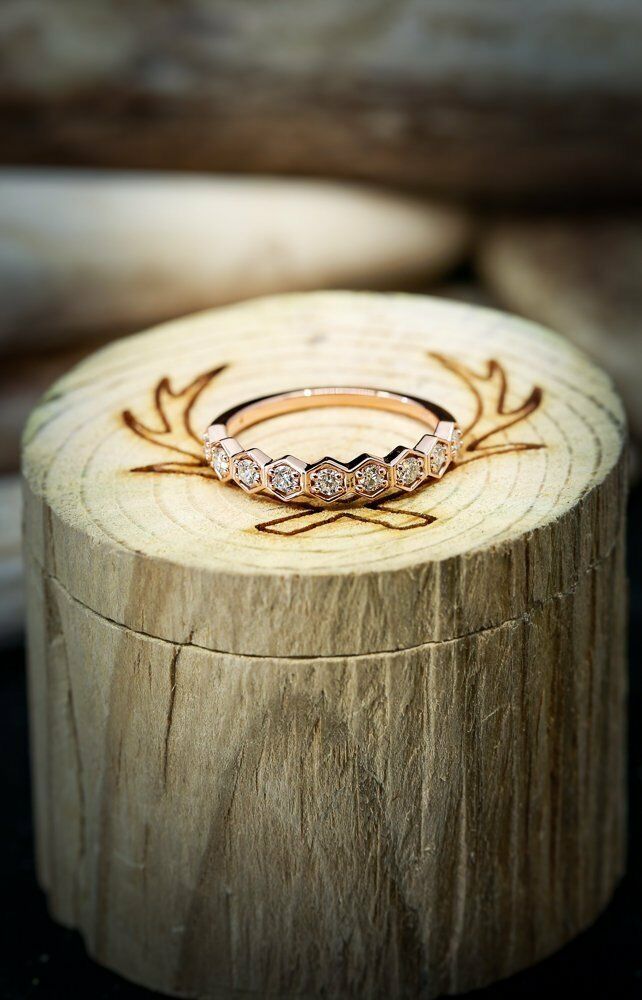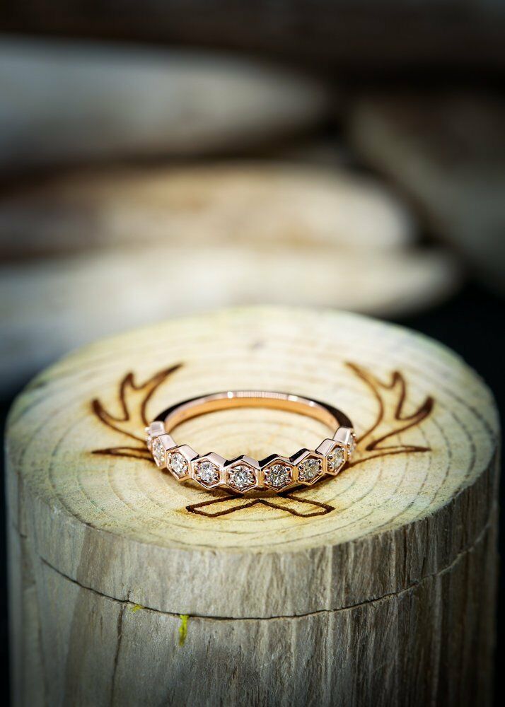 1ct Round Cut Diamond Wedding Ring Band 14k Rose Gold Over Hexagon Half Eternity