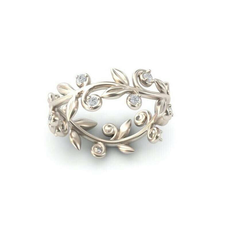 1ct Round Cut Diamond Wedding Ring Band Floral Leaf Inspired 14k White Gold Over