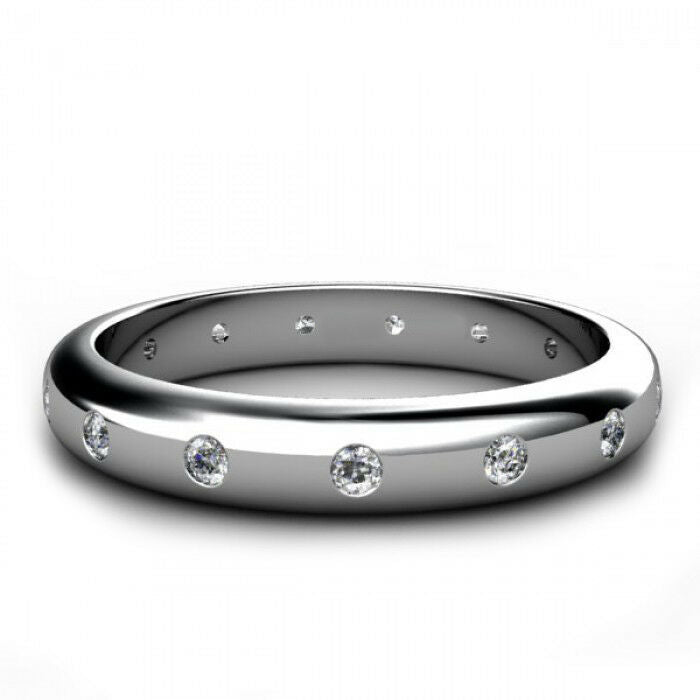 1ct Round Cut Diamond Wedding Ring Band Flush Set Eternity 14k White Gold Finish