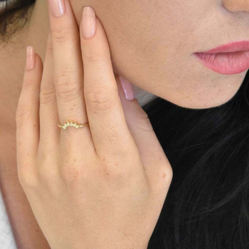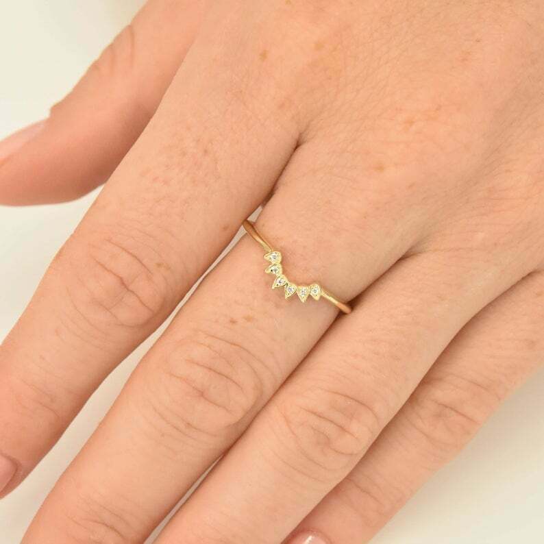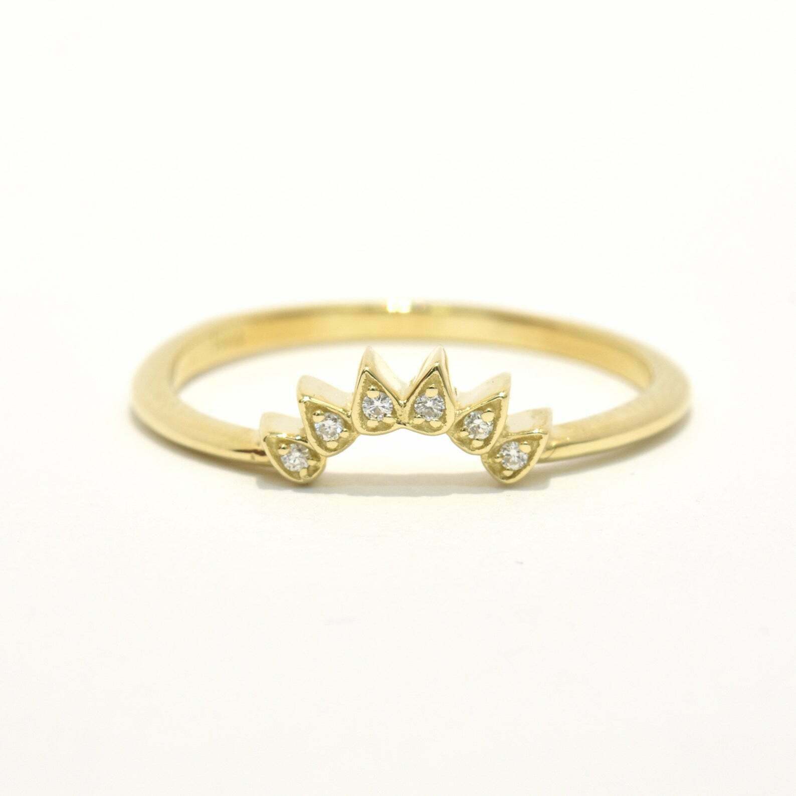1ct Round Cut Diamond Wedding Ring Band Minimalist Curved 14k Yellow Gold Finish