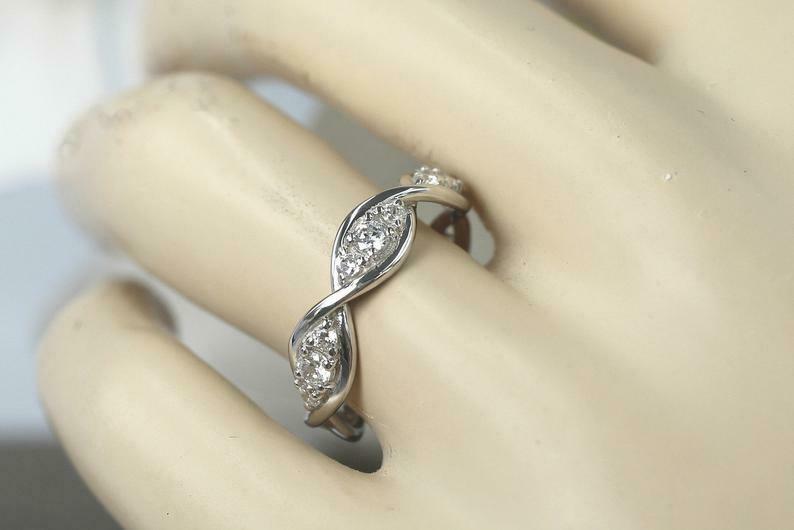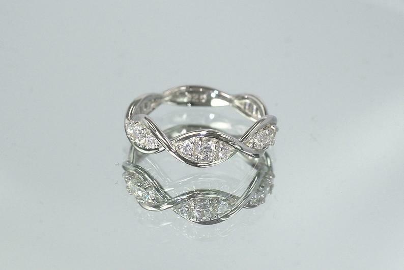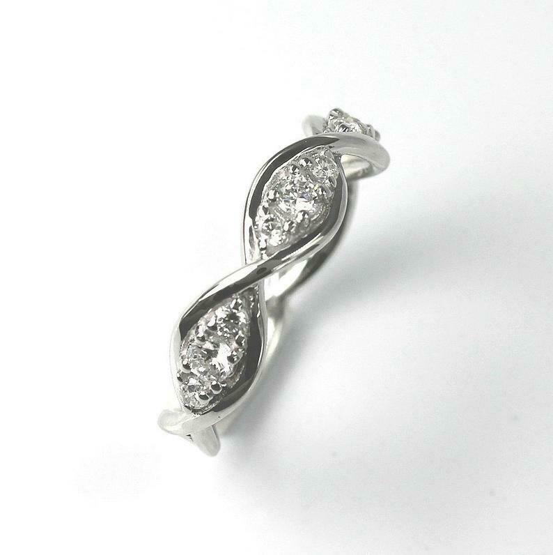 1ct Round Cut Diamond Wedding Ring Band Twisted Eternity 14k White Gold Finish