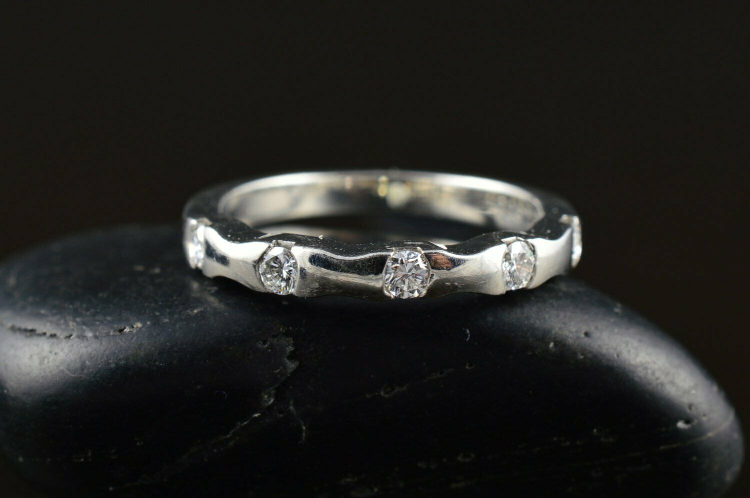 1Ct Round Cut DVVS1 Diamond Bamboo Design Wedding Band 14K White Gold Finish
