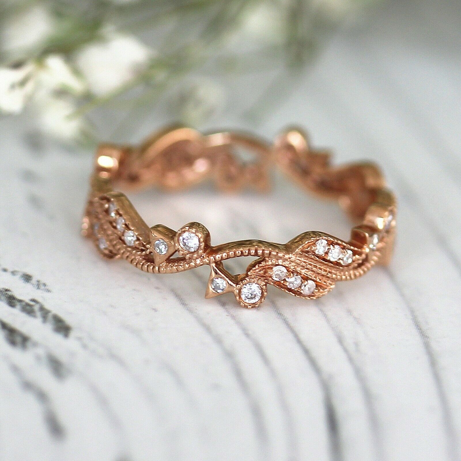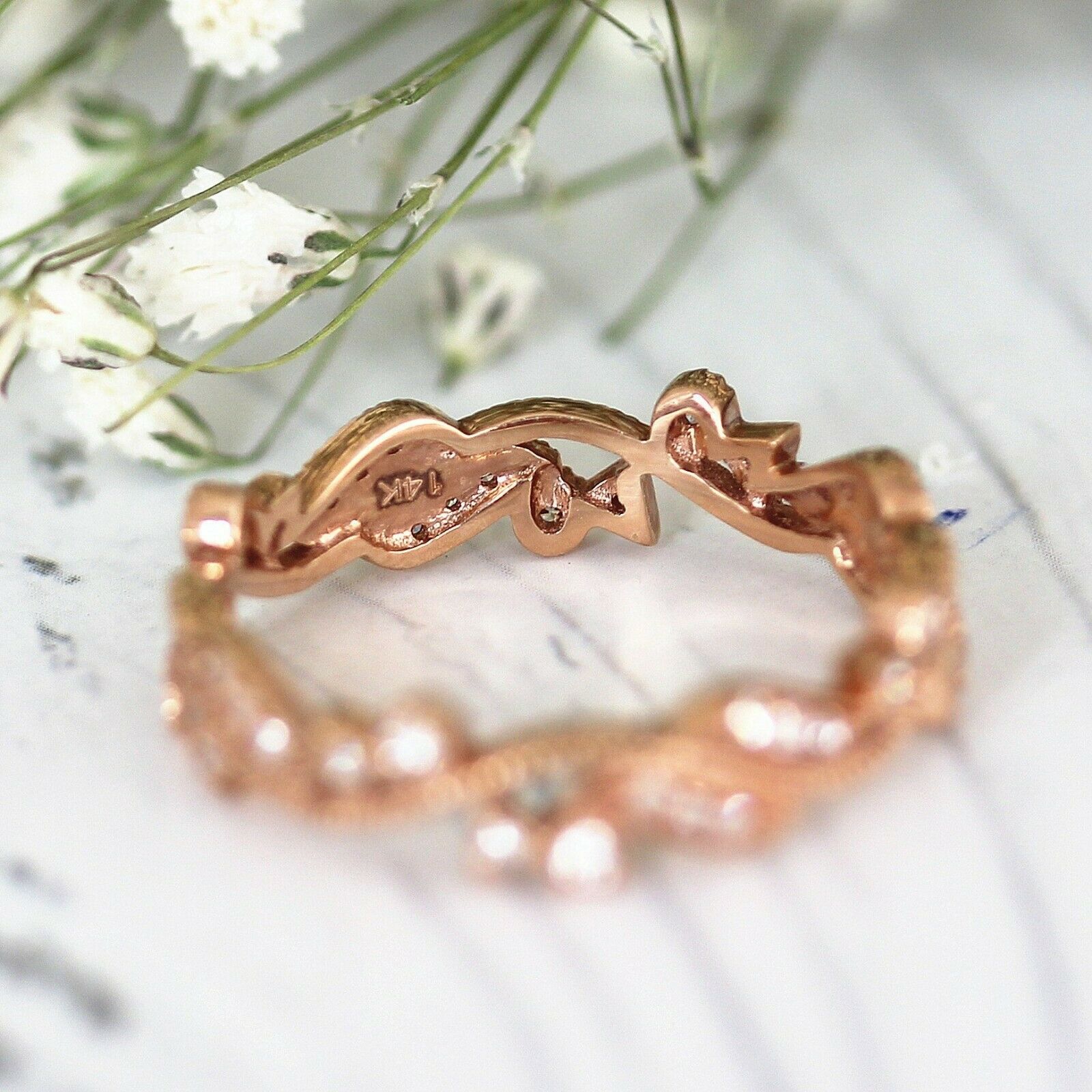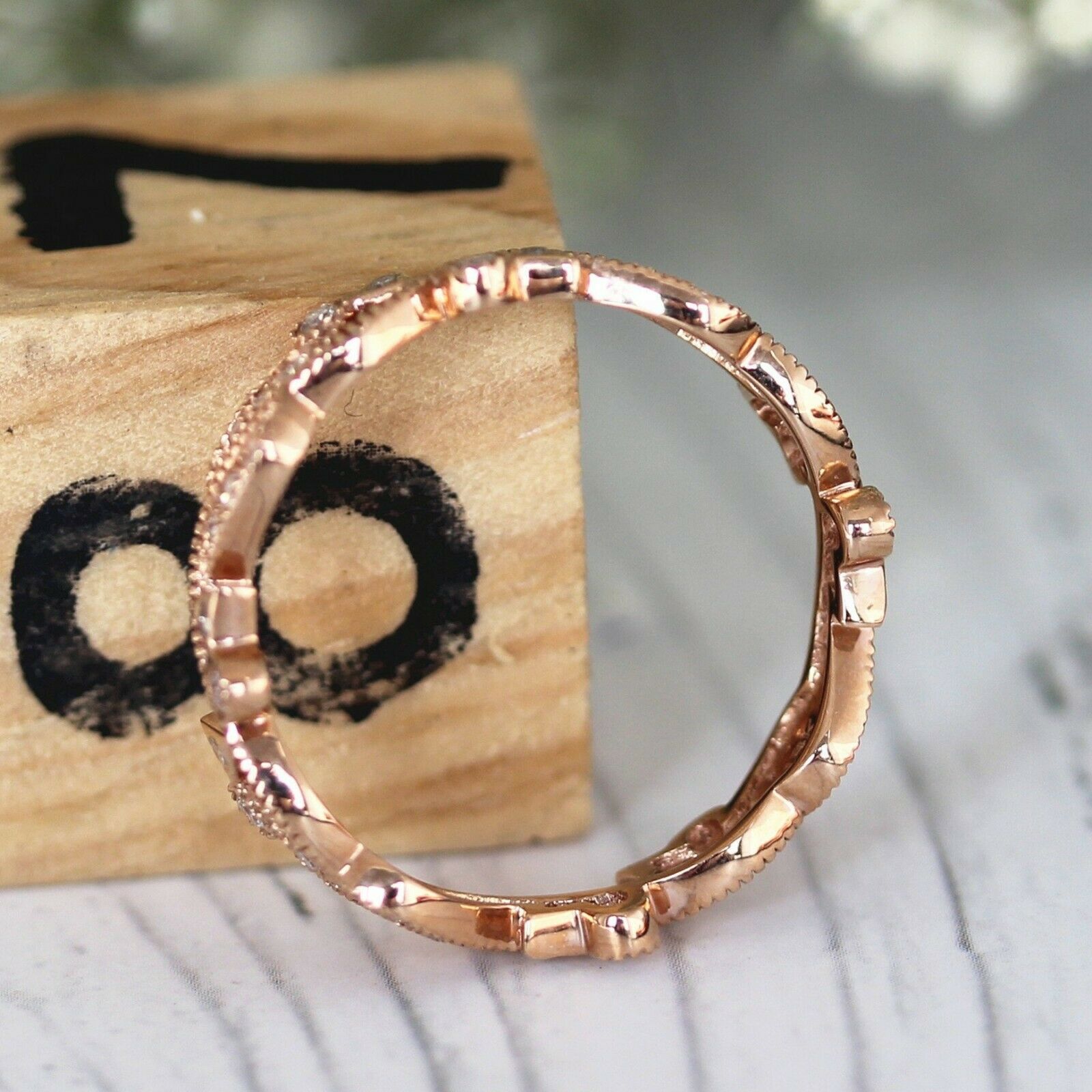 1Ct Round Cut DVVS1 Diamond Milgrain Vintage Wedding Band 14K Rose Gold Finish