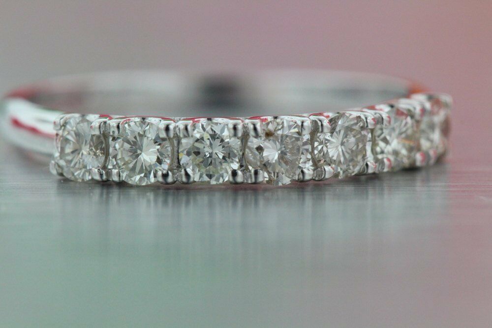 1ct Round Cut VVS1 Diamond 7 Stone Wedding Engagement Ring 14k White Gold Finish