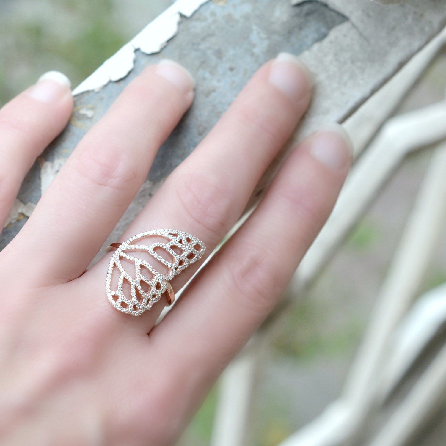 1ct Round Cut VVS1 Diamond Butterfly Wings Engagement Ring 14k Rose Gold Finish