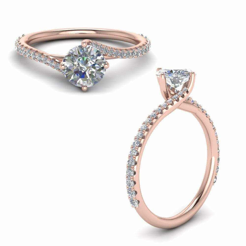 1ct Round Cut VVS1 Diamond Solitaire Swirl Engagement Ring 14k Rose Gold Finish