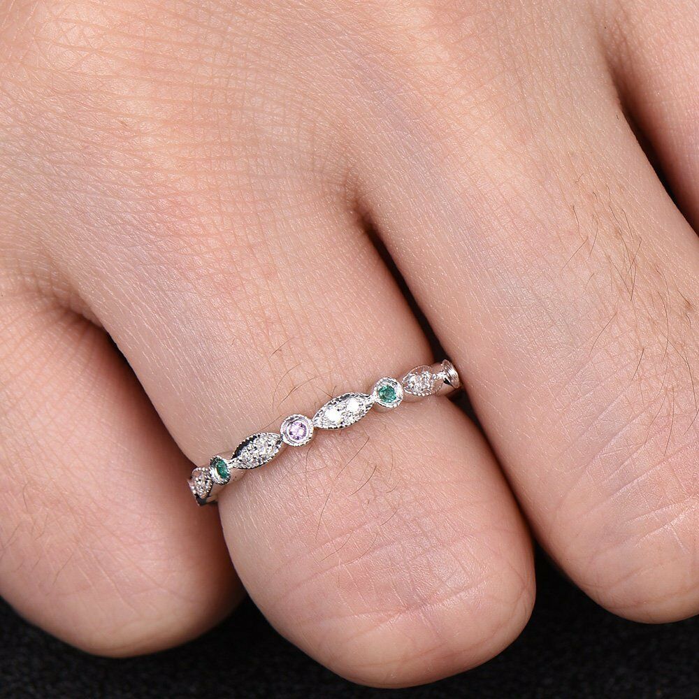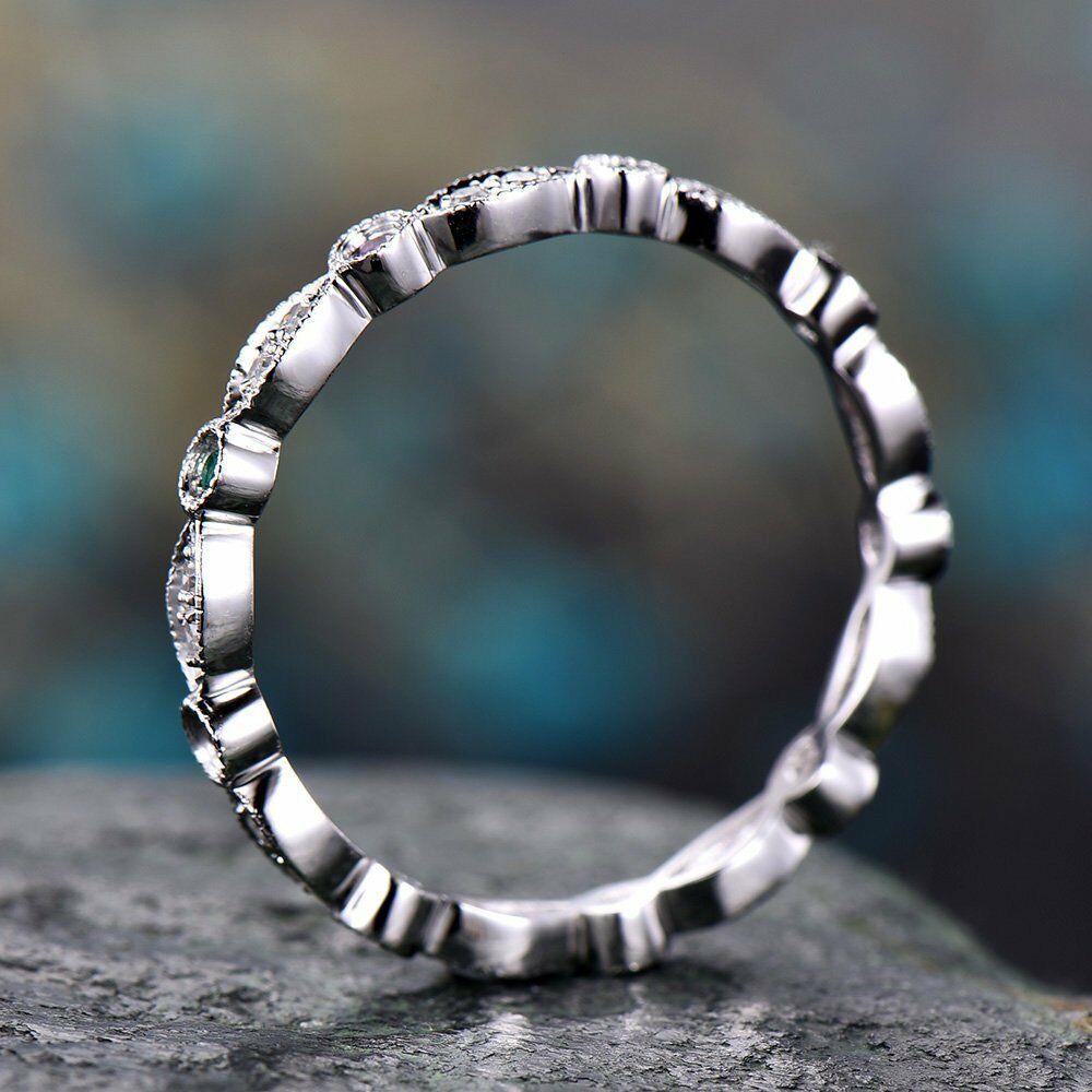 1Ct Round Cut VVS1 Diamond Vintage Slim Wedding Ring Band 18K White Gold Finish