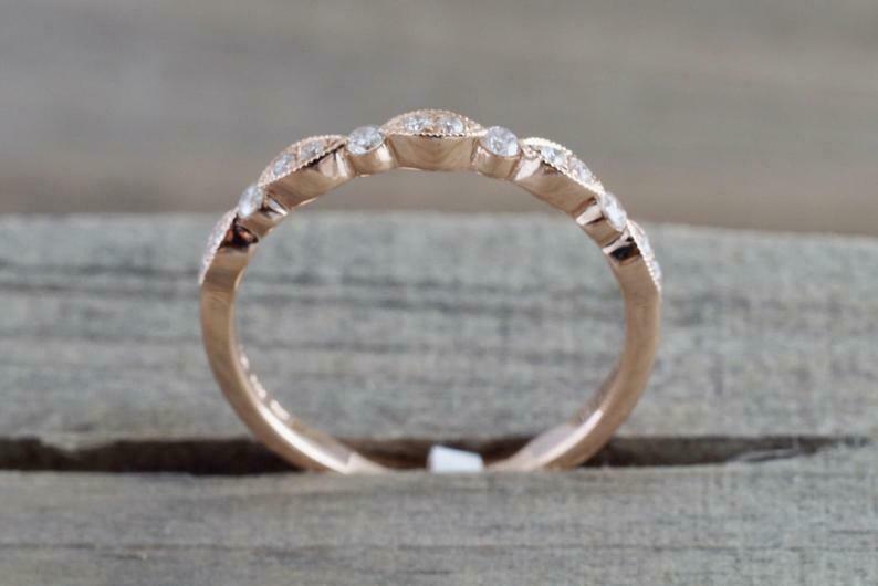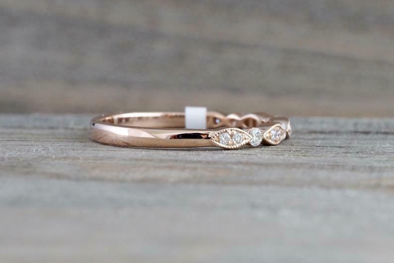 1ct Round Cut VVS1 Diamond Wedding Band Milgrain Stackable 14k Rose Gold Finish