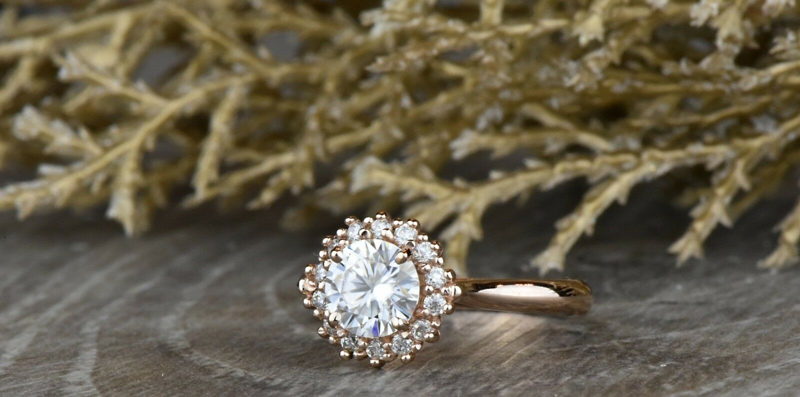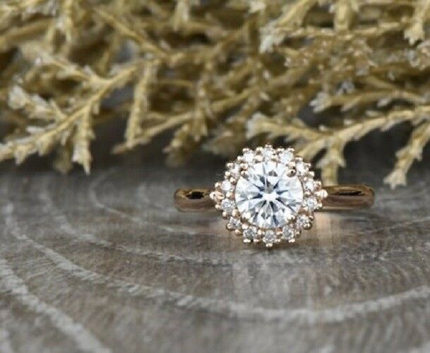 1ct Round Cut VVS1D Diamond Engagement Ring 14k Rose Gold Finish Halo Solitaire