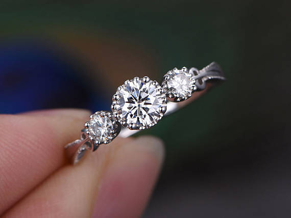 1ct Round Cut VVS1D Diamond Engagement Ring 14k White Gold Finish Unique Trilogy