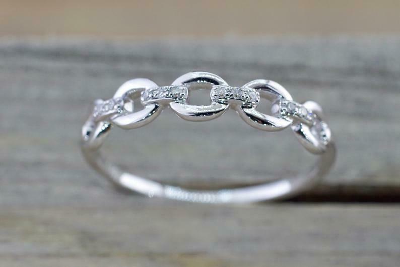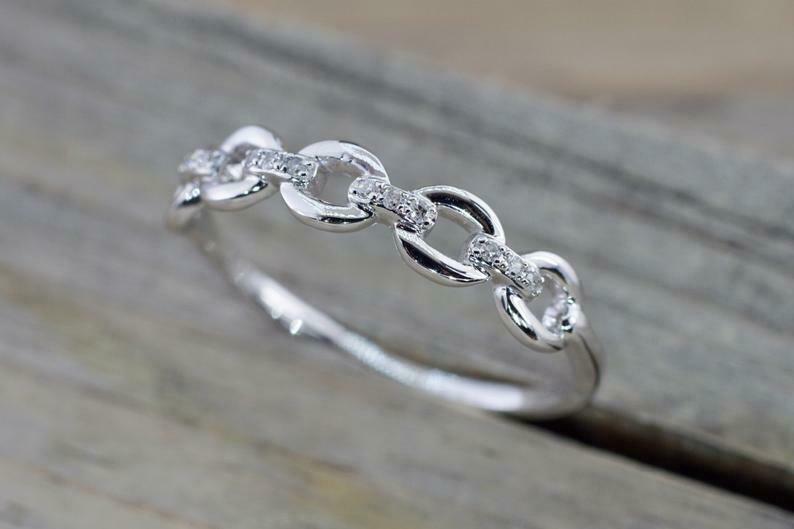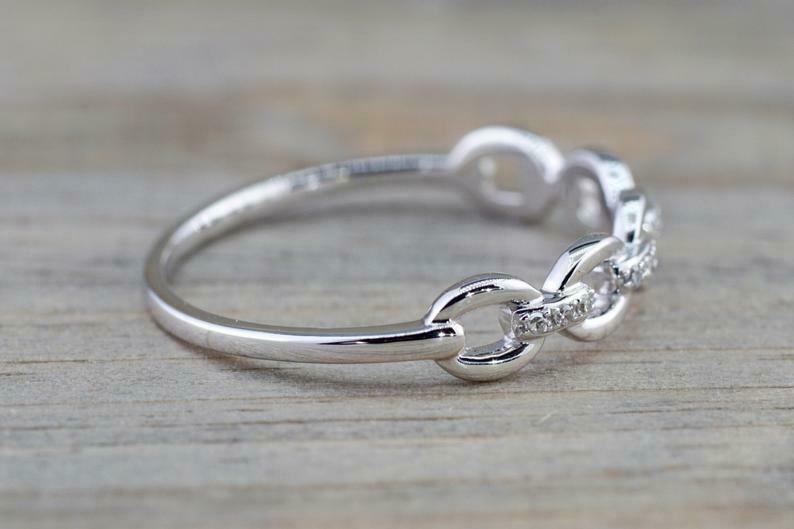 1ct Round Cut VVS1D Diamond Engagement Ring Connected Link 14k White Gold Finish