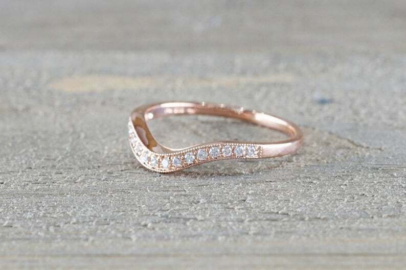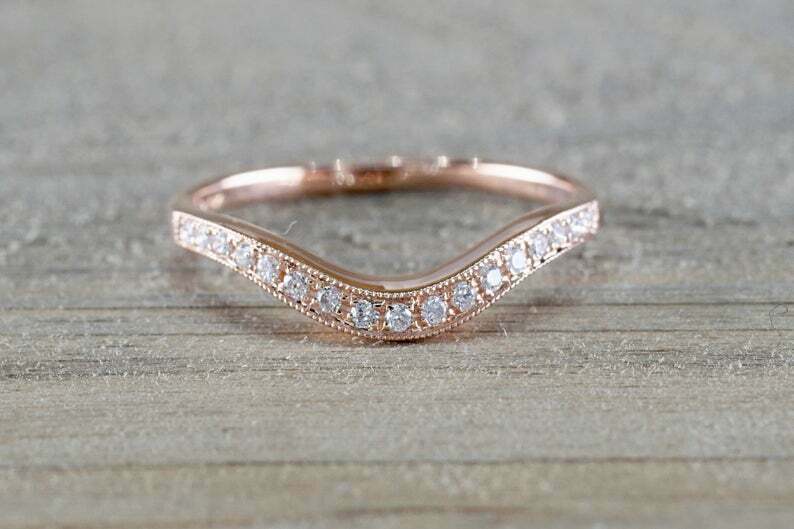1ct Round Cut VVS1D Diamond Wedding Band 14k Rose Gold Finish Stackable Curved