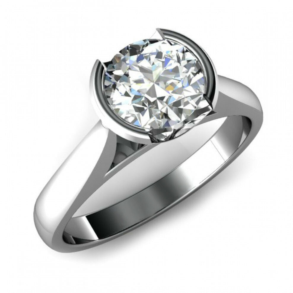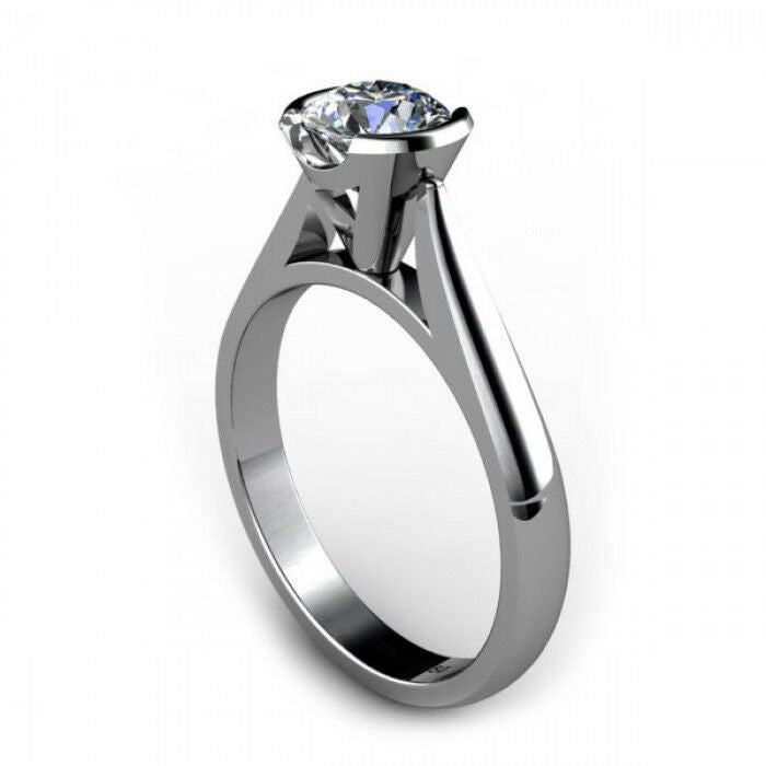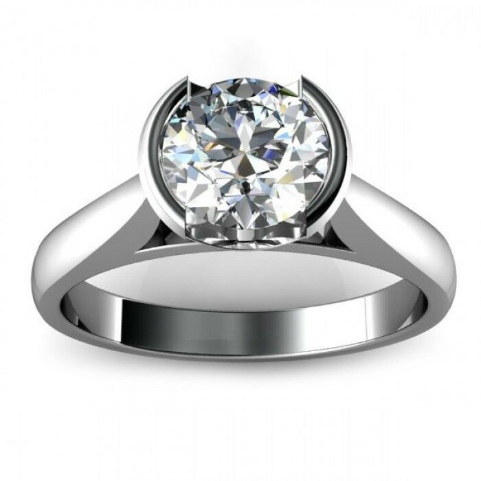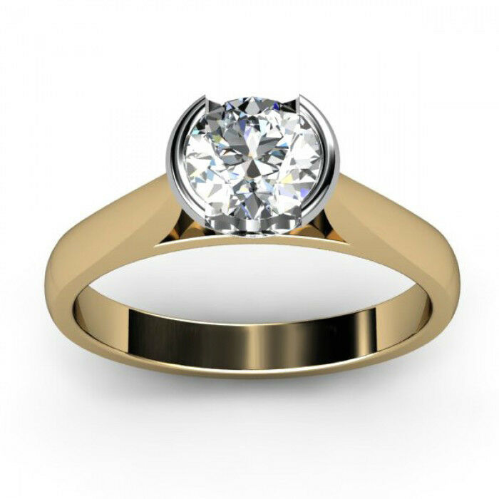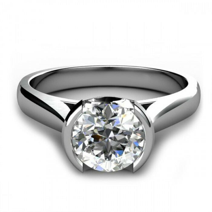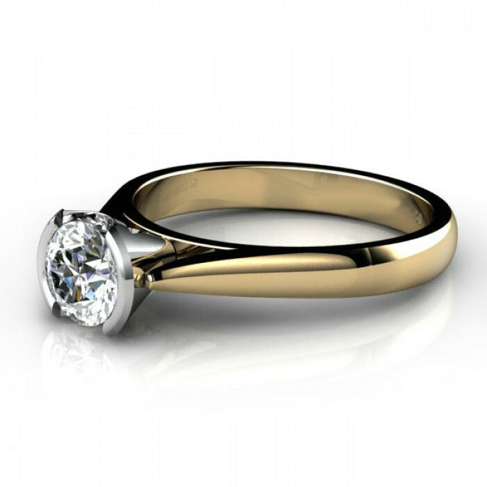 1ct Round Diamond Bezel Solitaire Engagement Ring 14k White-Yellow Gold Finish