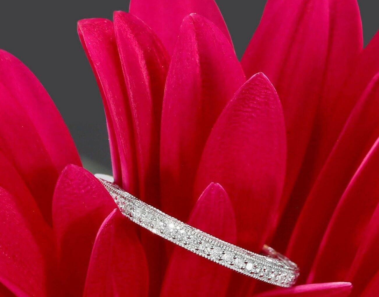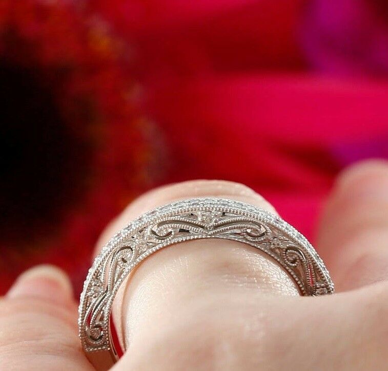 1ct Round Diamond Half Eternity Vintage Wedding Ring Band 14k White Gold Finish