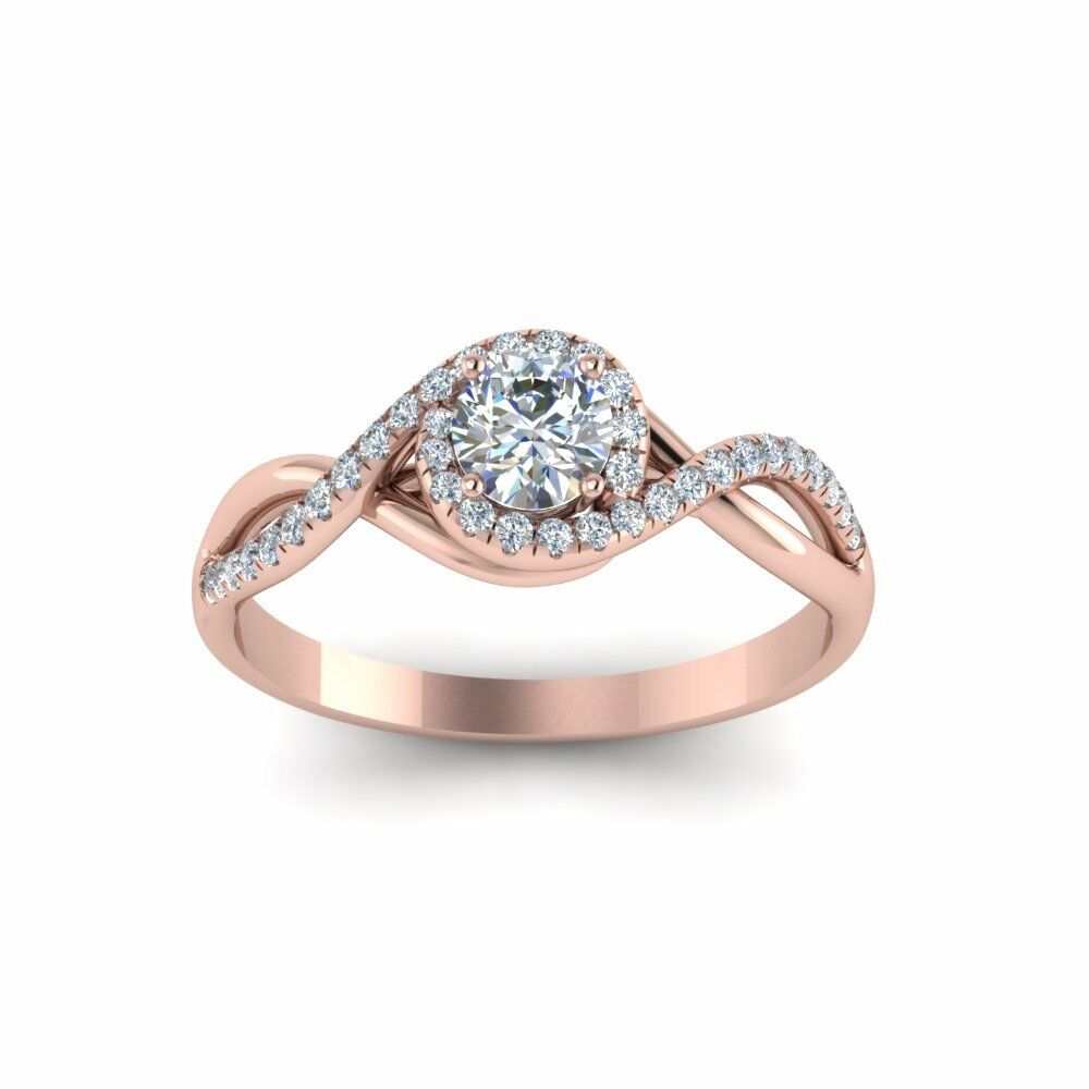 1ct Round Diamond Infinity Swirl Solitaire Engagement Ring 14k Rose Gold Finish