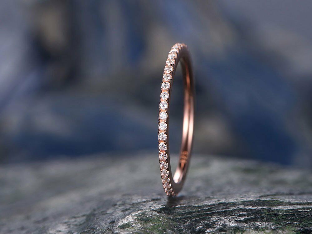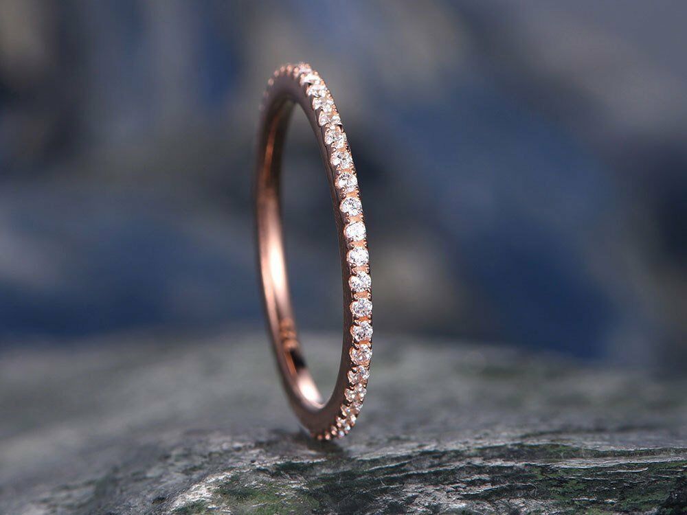 1Ct Round Diamond Minimalist Slim Eternity Wedding Ring Band 14K Rose Gold Over