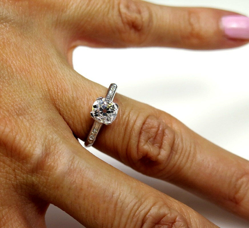 1Ct Round Diamond Petite Solitaire Vintage Engagement Ring 14K White Gold Finish