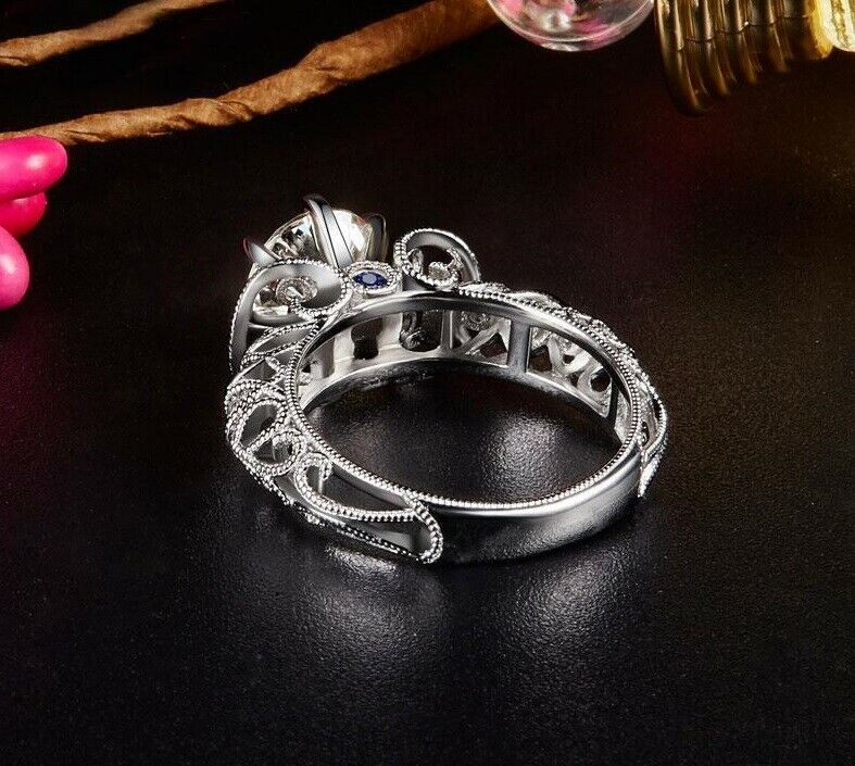 1Ct Round Diamond Solitaire Art Deco Ring Vintage Milgrain 14K White Gold Finish