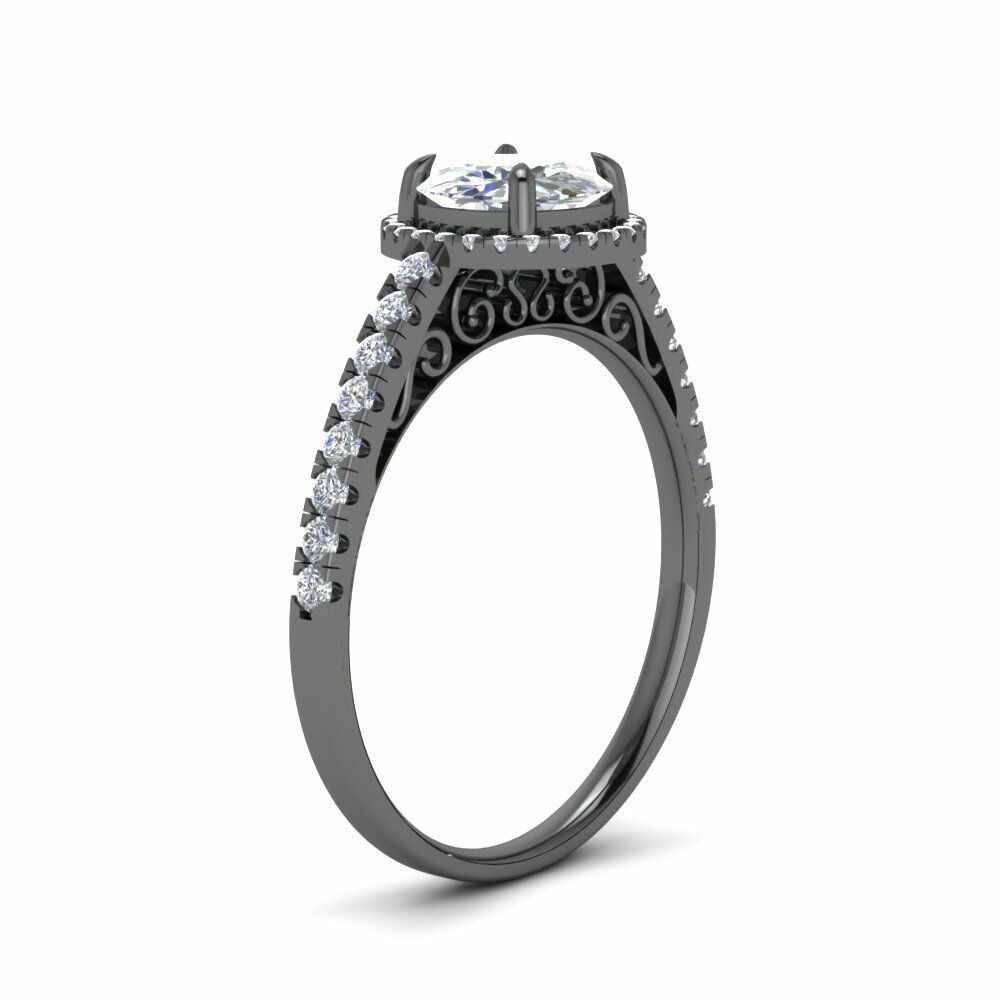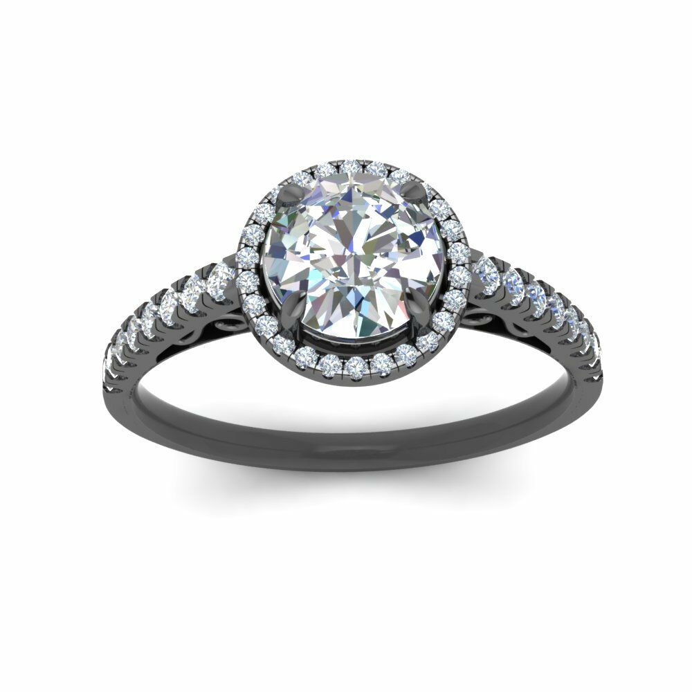 1ct Round Diamond Vintage Halo Solitaire Engagement Ring 14k Black Gold Finish