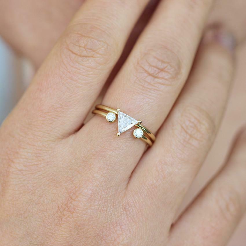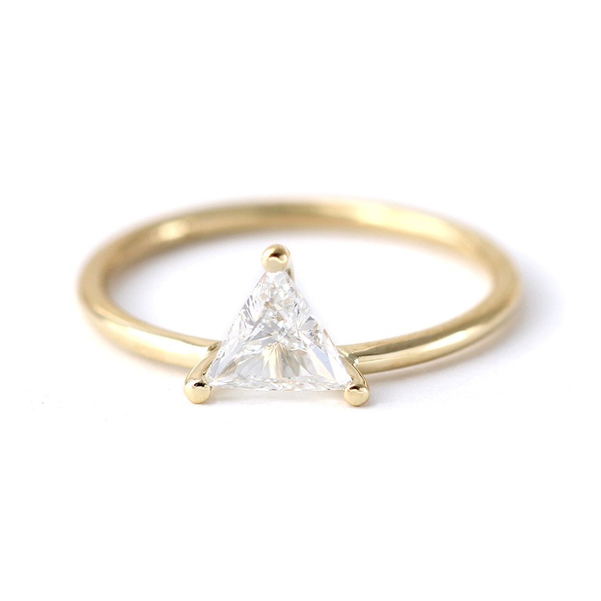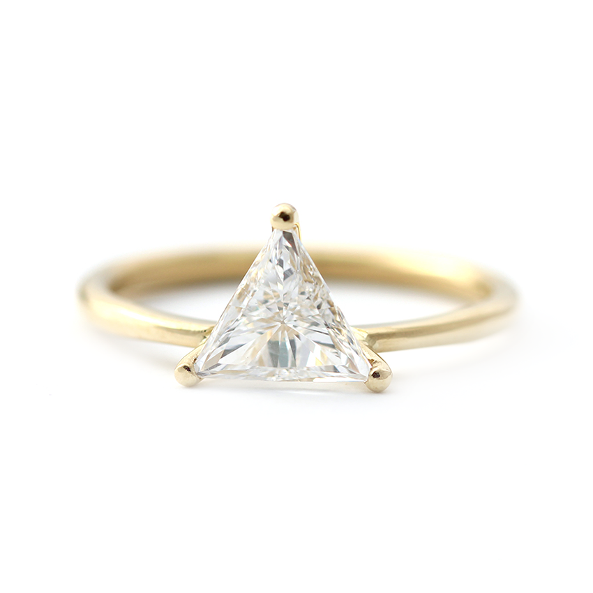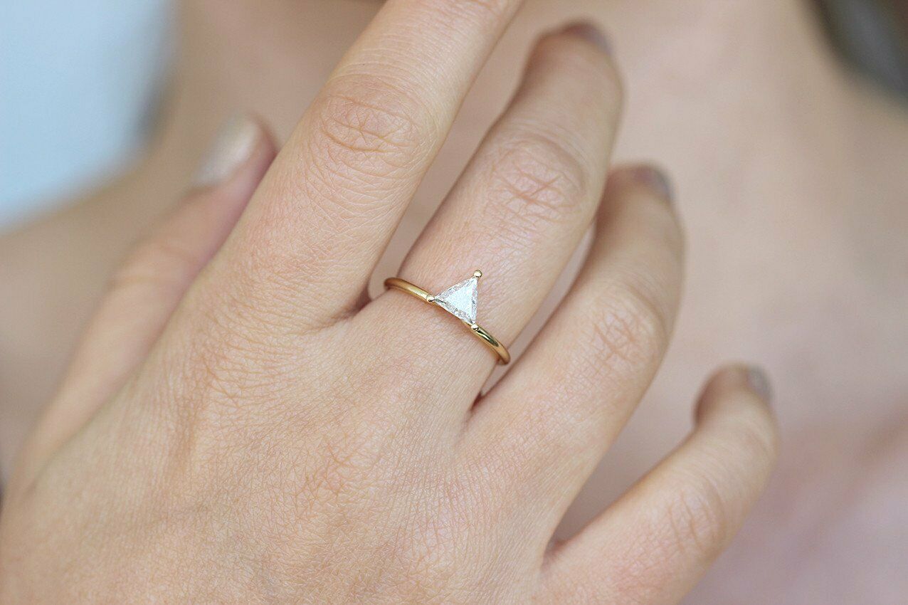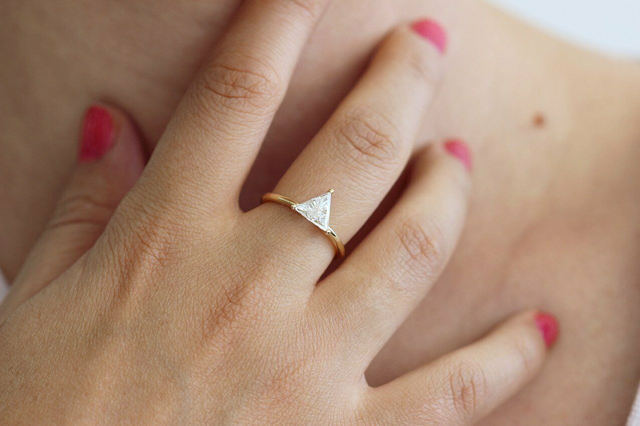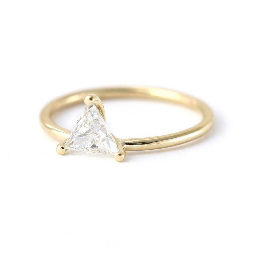 1ct Trillion Cut Diamond Engagement Ring 14k Yellow Gold Over Minimalist Dainty