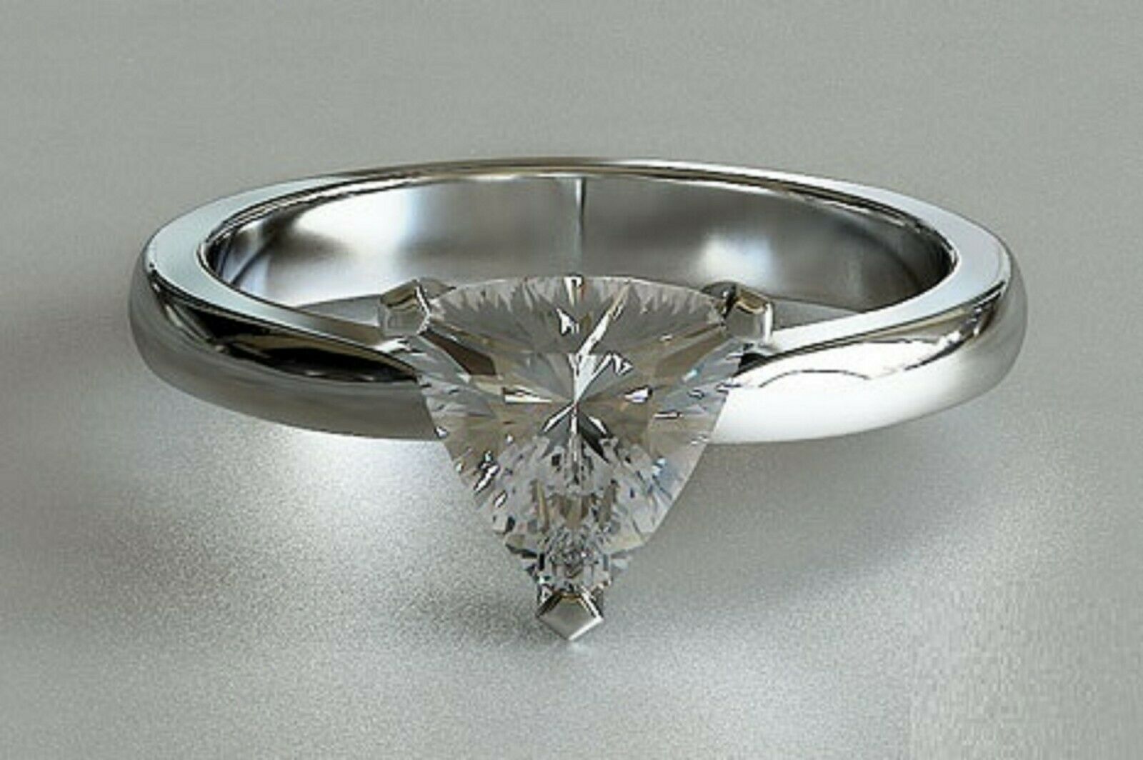 1ct Trillion Cut Diamond Engagement Ring Classic Solitaire 14k White Gold Finish