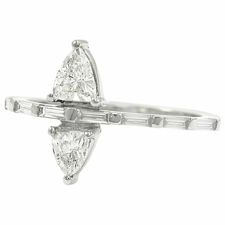 1ct Trillion Cut Diamond Engagement Ring Two Stone Solitaire 14k White Gold Over