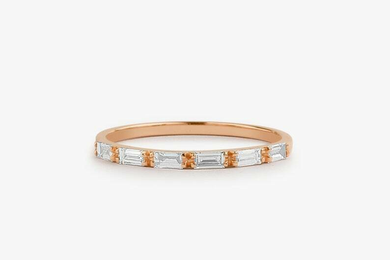1ct Wedding Band Baguette Cut Diamond Half Eternity Design 14k Rose Gold Finish