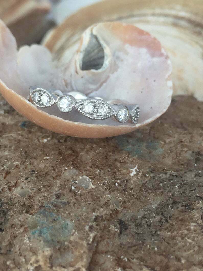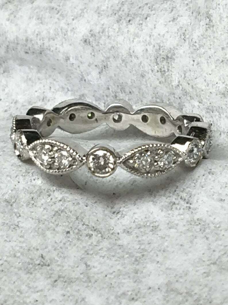 1ct Wedding Band Round Cut Diamond Milgrain Full Eternity 14k White Gold Finish