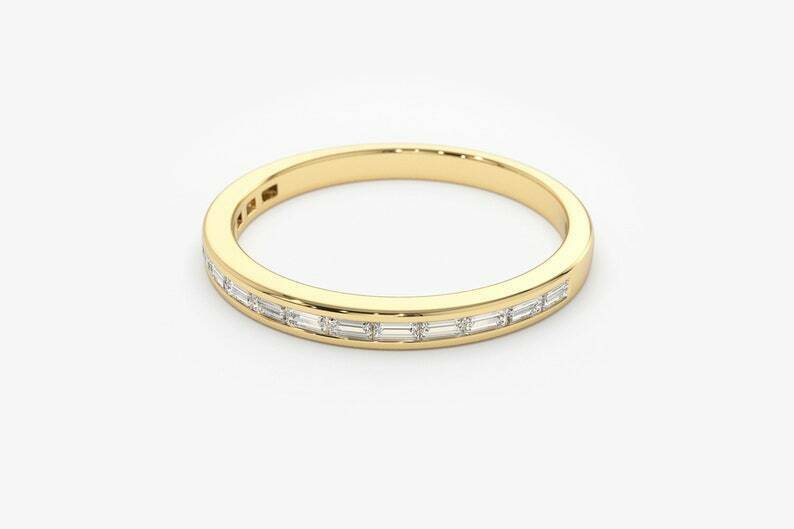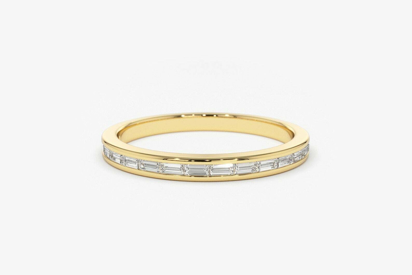 1ct Wedding Ring Band Baguette Cut Diamond Full Eternity 14k Yellow Gold Finish