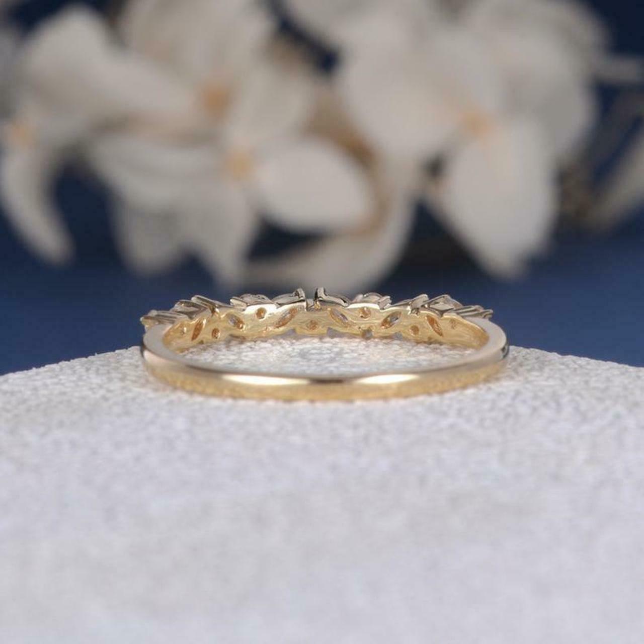 1ct Wedding Ring Band Marquise Round Cut Diamond Stackable 14k Yellow Gold Finish