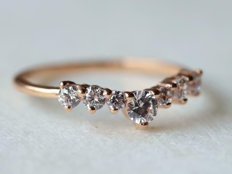 1ct Wedding Ring Band Round Cut Diamond Curved Stackable 14k Rose Gold Finish