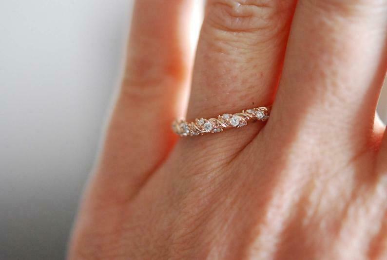 1ct Wedding Ring Band Round Cut Diamond Rope Twist Design 14k Rose Gold Finish